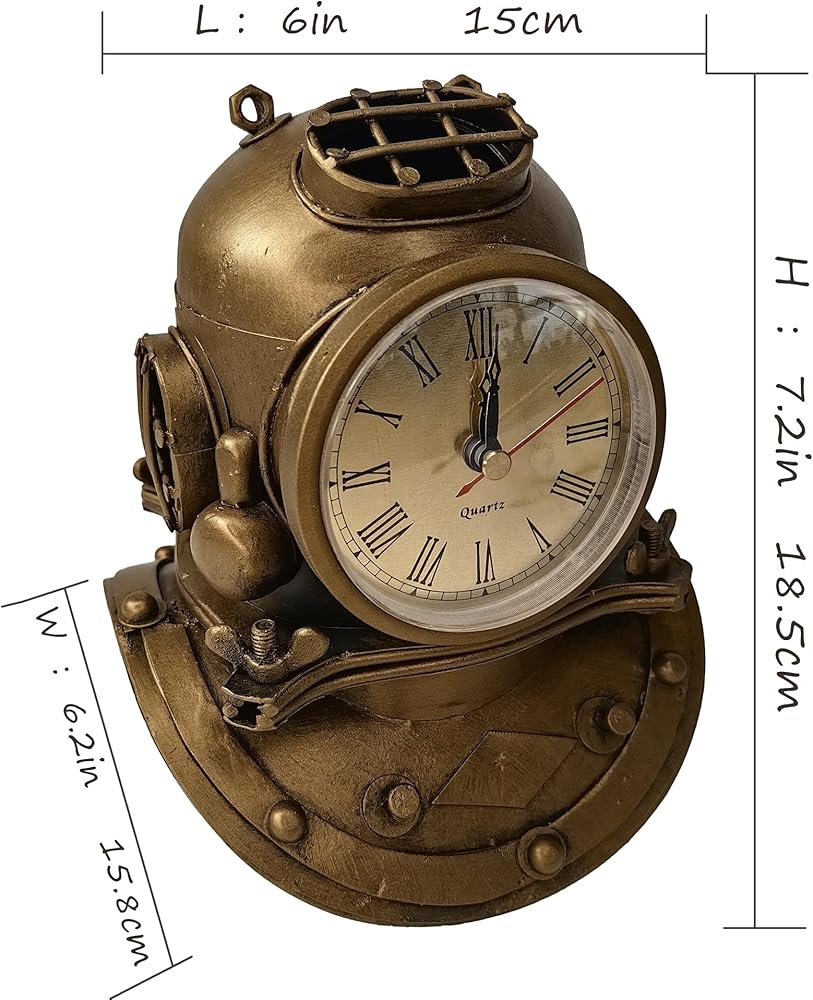 This Diving Helmet Style clock is made of high-quality metal and has a vintage style design, which is perfect for decorating your home, living room, bedroom, office, etc. It is a great gift for antique logo collectors, and anyone who loves retro style.