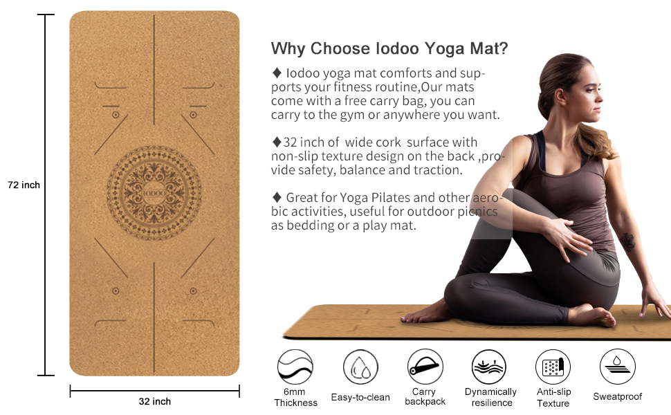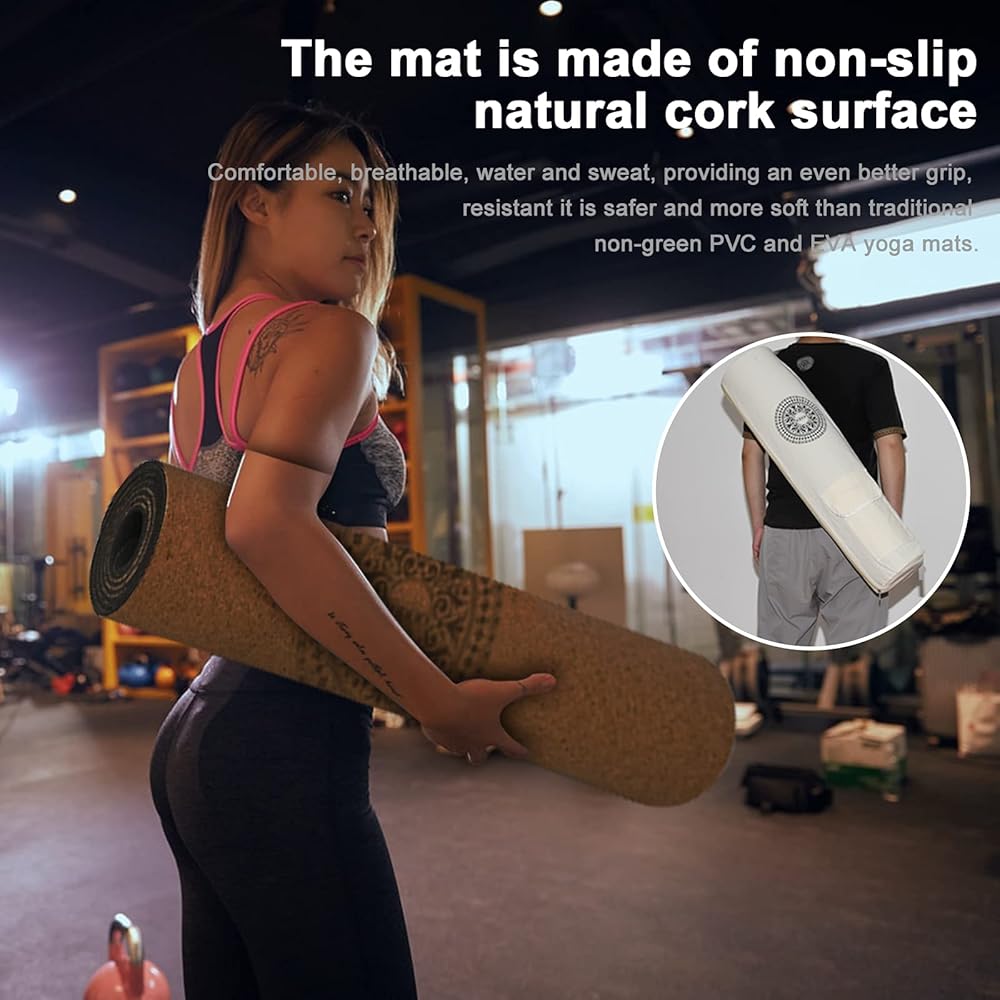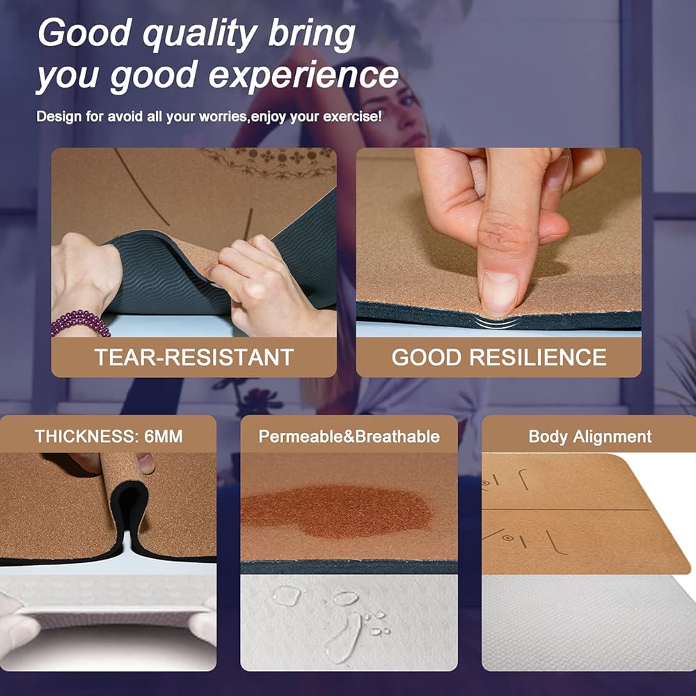 • ☘️【سطح فلين صديق للبيئة وسمك إضافي 6 مم】تصميم سطح فلين صديق للبيئة، يمتص العرق ولا ينزلق، مع قاعدة "TPE"، تجنب تحريك سجادة اليوجا على الأرض عند ممارسة التمارين. بالإضافة إلى ذلك، فإن سجادة اليوجا يودو بسمك 6 مم، عندما تستلقي لن تشعر بصلابة الأرض.