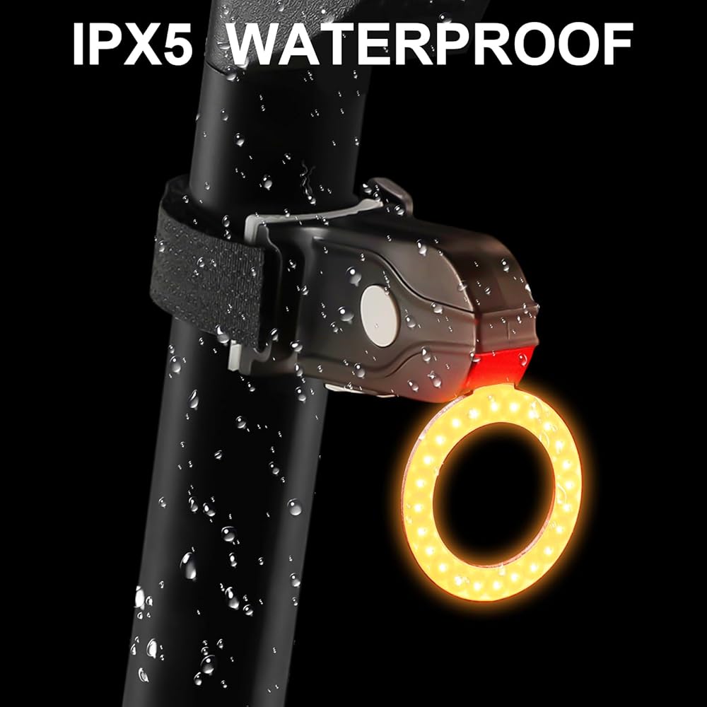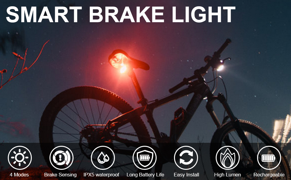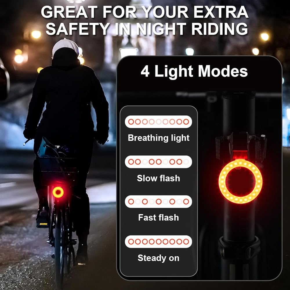 【مستشعر ذكي】يمكن استخدامه كإضاءة خلفية للدراجة أو كضوء تحذير. عند استشعار الفرامل، سيزداد سطوع الضوء ويظهر سطوعًا عاليًا لمدة ثانيتين لتحذير المركبات الخلفية. بعد القيادة العادية، يمكن استعادته تلقائيًا.