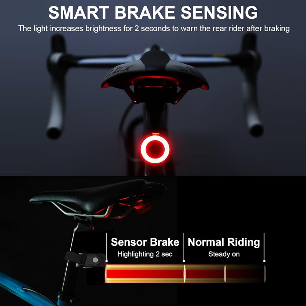 ضوء خلفي للاستشعار التلقائي، ضوء فرامل الدراجة الذكي، مصابيح خلفية للدراجة مستشعر للفرامل للركوب الليلي، ضوء تحذير للسلامة أثناء ركوب الدراجات، ضوء LED قابل لإعادة الشحن عبر USB