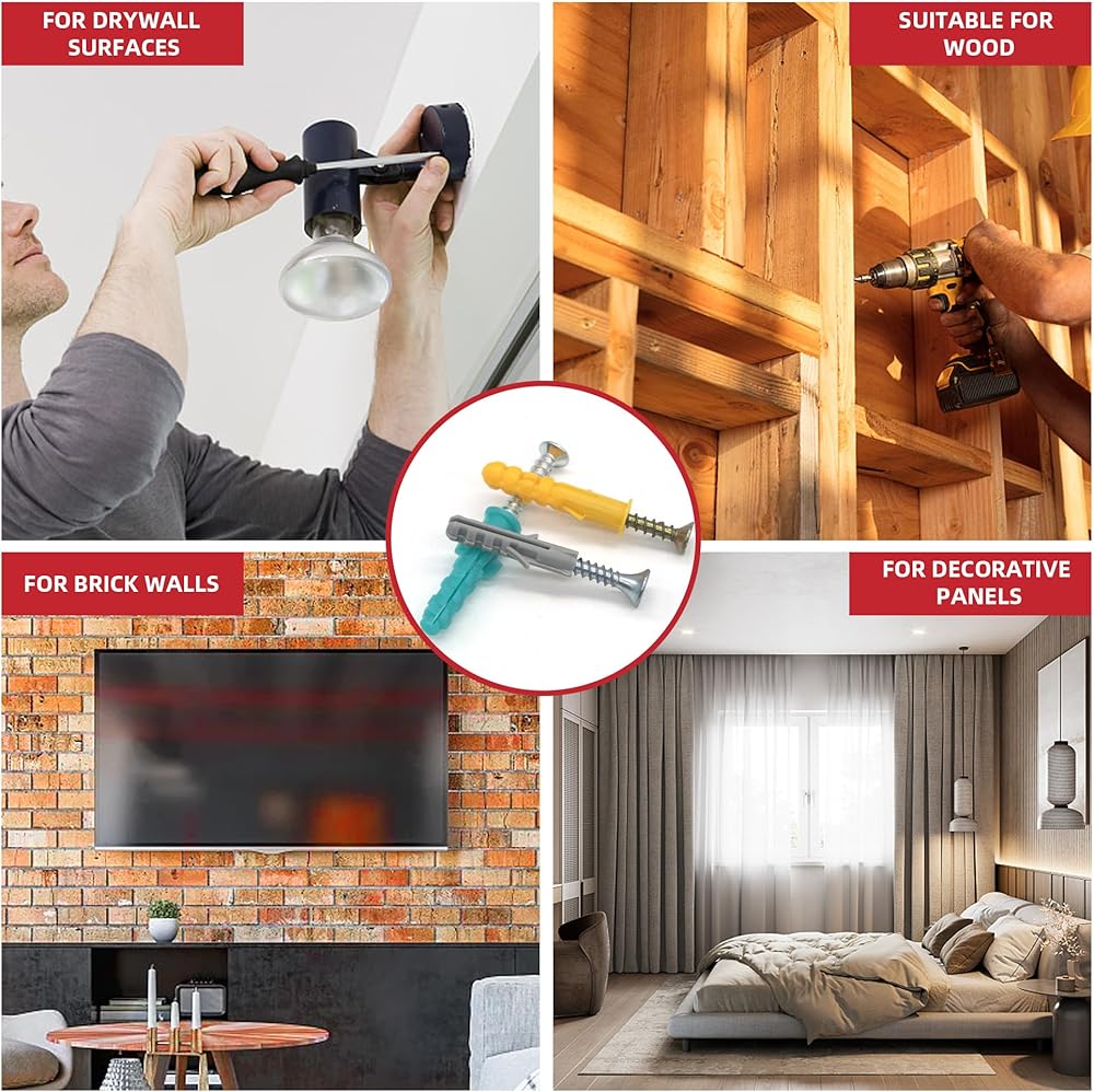 ✔【WIDE APPLICATION】: The dry wall anchors and wood screws set can help you hang mirror, curtain rail, decorative pictures, photo frames, towel rack and lightings. Suitable for various walls, such as brick walls, concrete walls, dry walls and wooden walls.