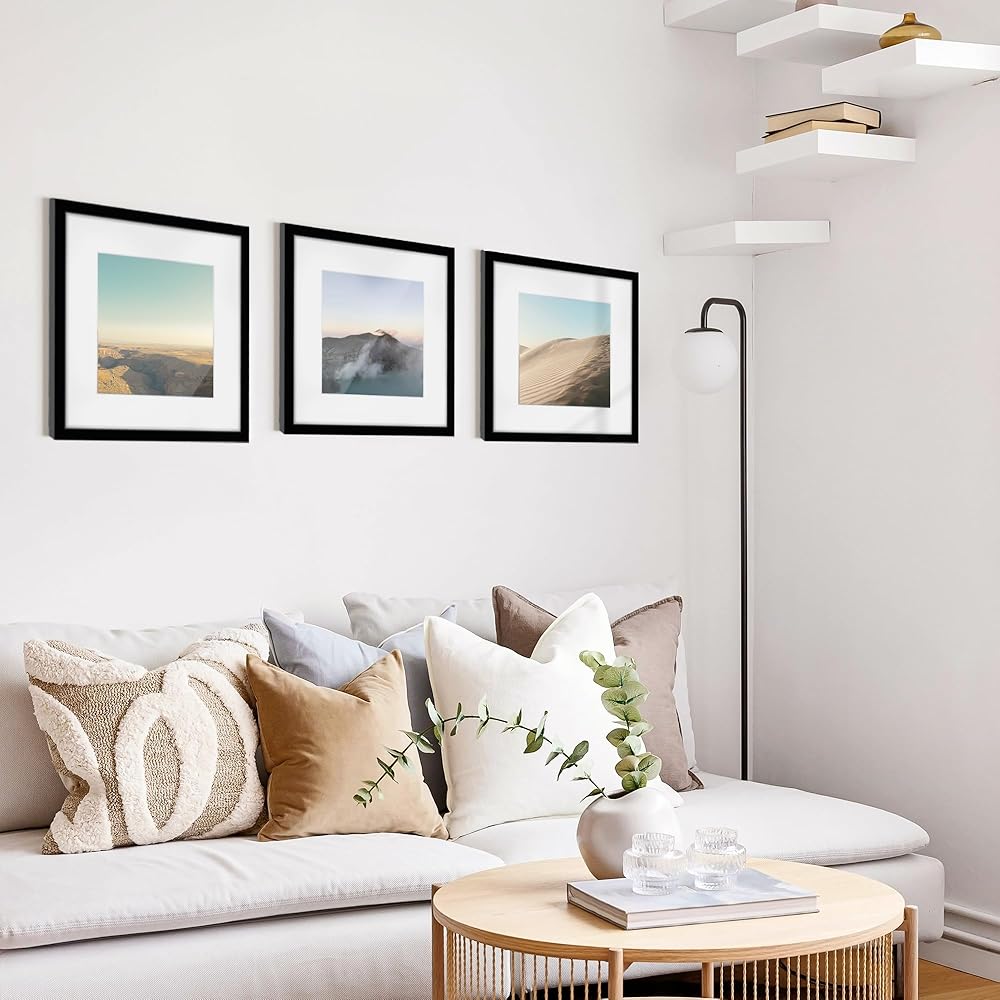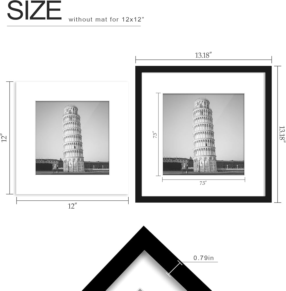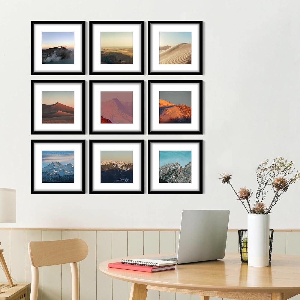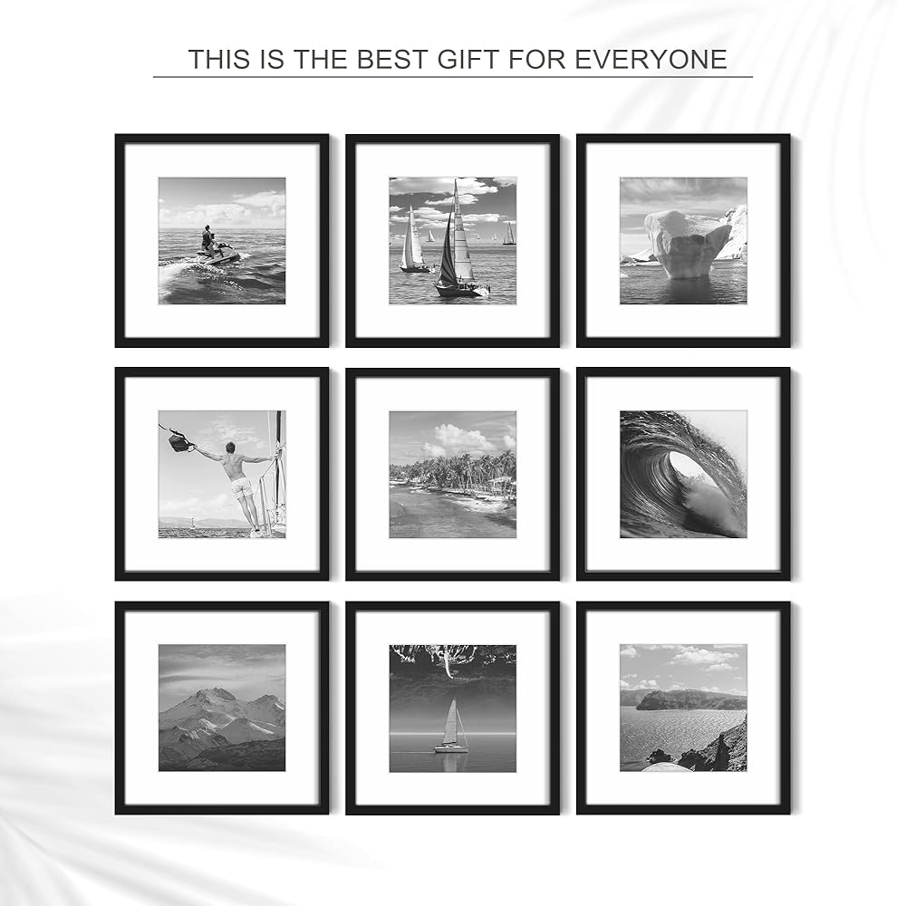 مجموعة إطارات صور مقاس 12 × 12 مكونة من 9 قطع، مجموعة إطارات حائط معرض الصور مقاس 8 × 8 مع حصيرة أو 12 × 12 بدون حصيرة، إطارات صور مجمعة مربعة للجدار، أسود