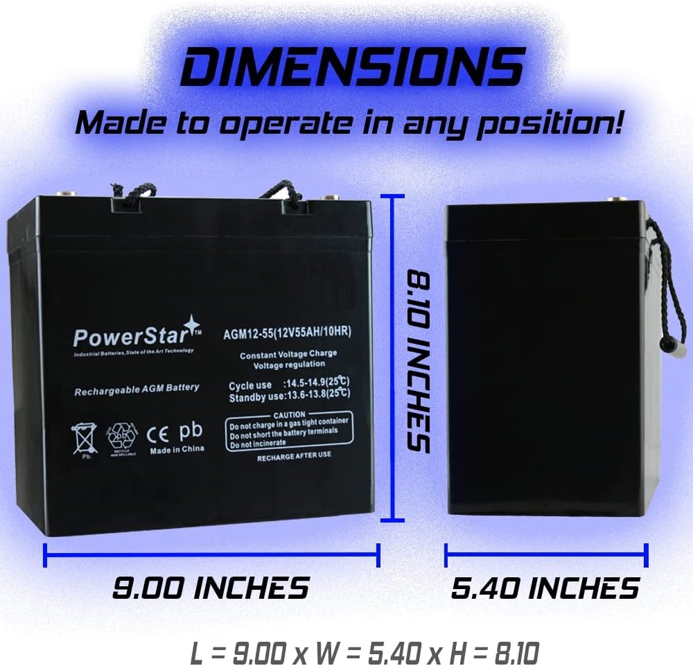 بطارية PowerStar 12 فولت 55 أمبير قابلة لإعادة الشحن AGM/SLA ذات دورة عميقة لبطارية محرك التصيد الكهربائي العائم لقارب الطاقة