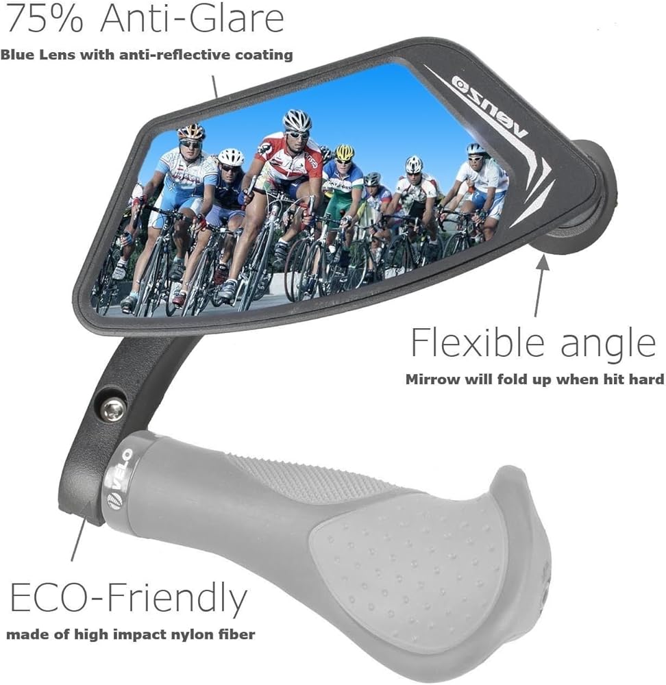 صلبة وتدوم طويلاً - هيكل متين للغاية يضمن بقاء هذه المرآة لفترة طويلة. لن تهتز المرآة أو تتشقق أو تنكسر حتى أثناء ركوب الدراجة على المنحدرات. الوزن: 0.4 رطل لكل مرآة.