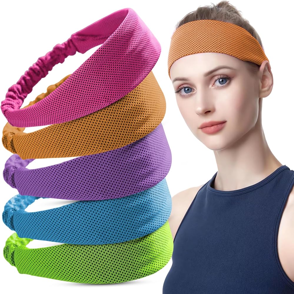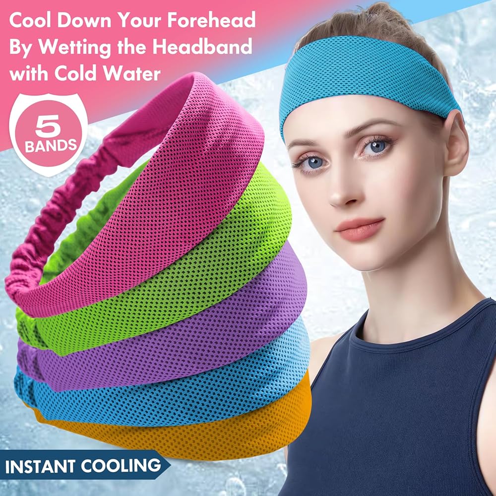 مجموعة من 5 قطع من عصابة الرأس المبردة: تأتي في 5 ألوان من عصابة الرأس المبردة، مثل الأسود والأزرق الداكن والأحمر الوردي والأخضر الساطع والأرجواني، تتناسب مع ملابس التمرين المختلفة. يبلغ عرض عصابات الرأس 2.83 بوصة، وطولها 8.66 بوصة قبل التمدد، ويمكن تمديدها إلى 13.58 بوصة، وهي مناسبة لمحيط الرأس المختلف للنساء والرجال.
