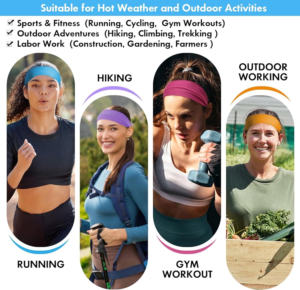 الاستخدام الرياضي: عصابات رأس تبريد للنساء والرجال مثالية لإبعاد العرق والشعر عن عينيك أثناء ممارسة الرياضة والحفاظ على برودة جبهتك. رائعة للرياضات الداخلية والخارجية ذات درجة الحرارة العالية، مثل الزبادي والتمرين والجري وركوب الدراجات والجري وكرة السلة واليوجا والجولف وكرة القدم وكرة القدم والسفر والتسلق والشاطئ والتخييم والتسلق، إلخ.