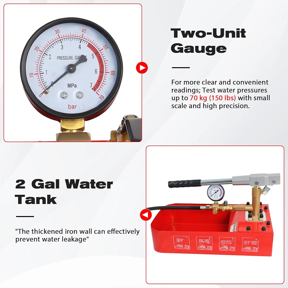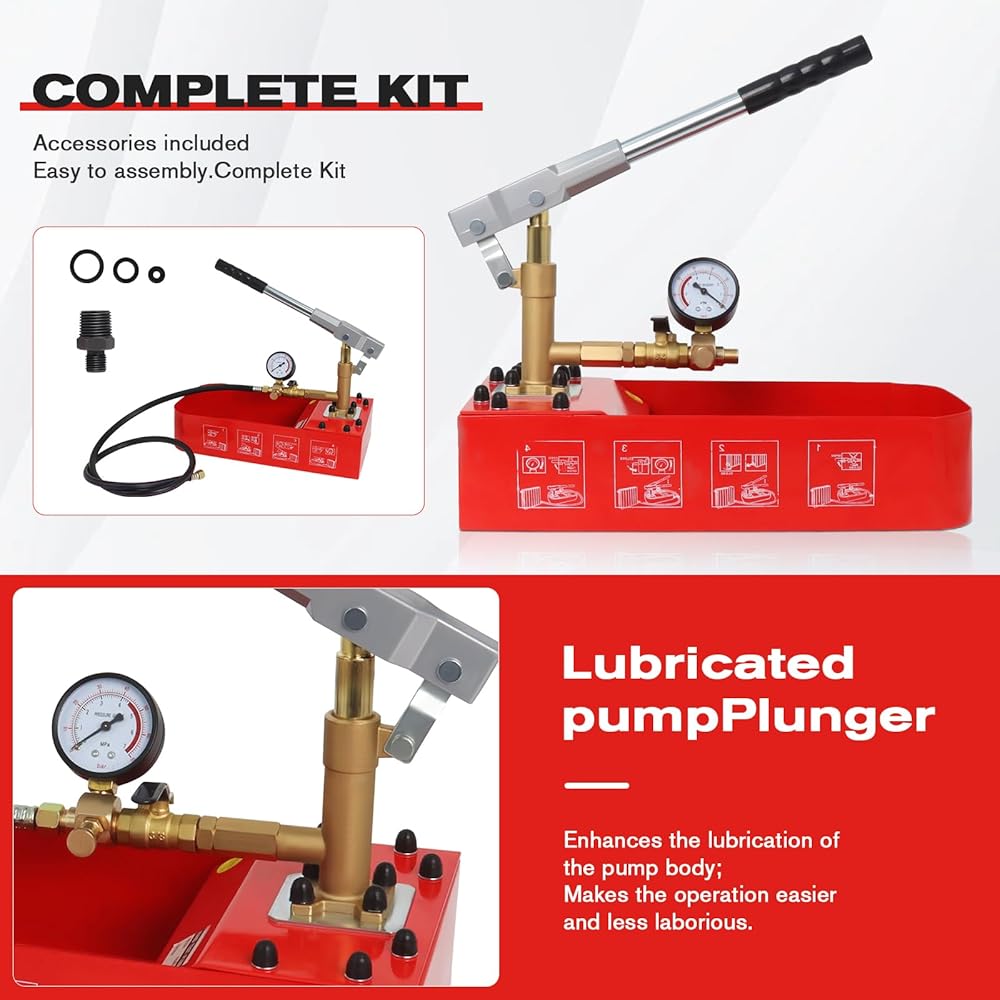 【استخدام واسع】هذه المضخة مناسبة للاختبار الهيدروليكي للتسربات في أنظمة أنابيب المياه والتدفئة وتركيبات الزيت وتكييف الهواء.