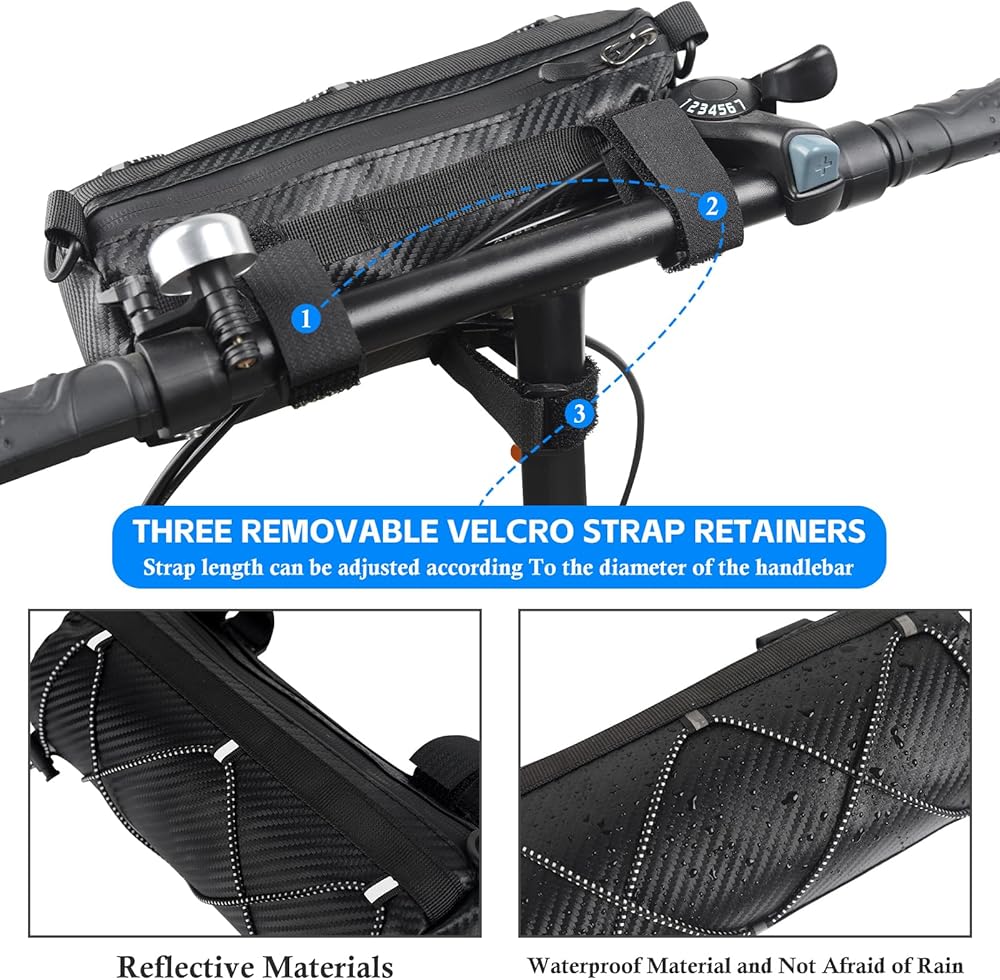 【هدية جيدة ومناسبة لمختلف السيناريوهات】 إذا كان لديك أصدقاء يستمتعون بركوب الدراجات، فإن حقيبة الدراجة هي أفضل هدية. حقيبة المقود مزودة بإبزيمين من النايلون، ثابتة وليس من السهل هزها. تناسب حقائب الدراجات الهوائية مختلف أنواع وأحجام الدراجات، مثل الدراجات الجبلية ودراجات الأطفال وغيرها.