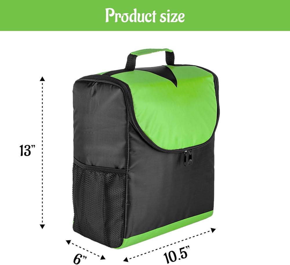 • SIZE: Overall dimension 10.5"W x 13"H x 6"D. More than enough to carry a one person meal with water bottles and canned drinks.