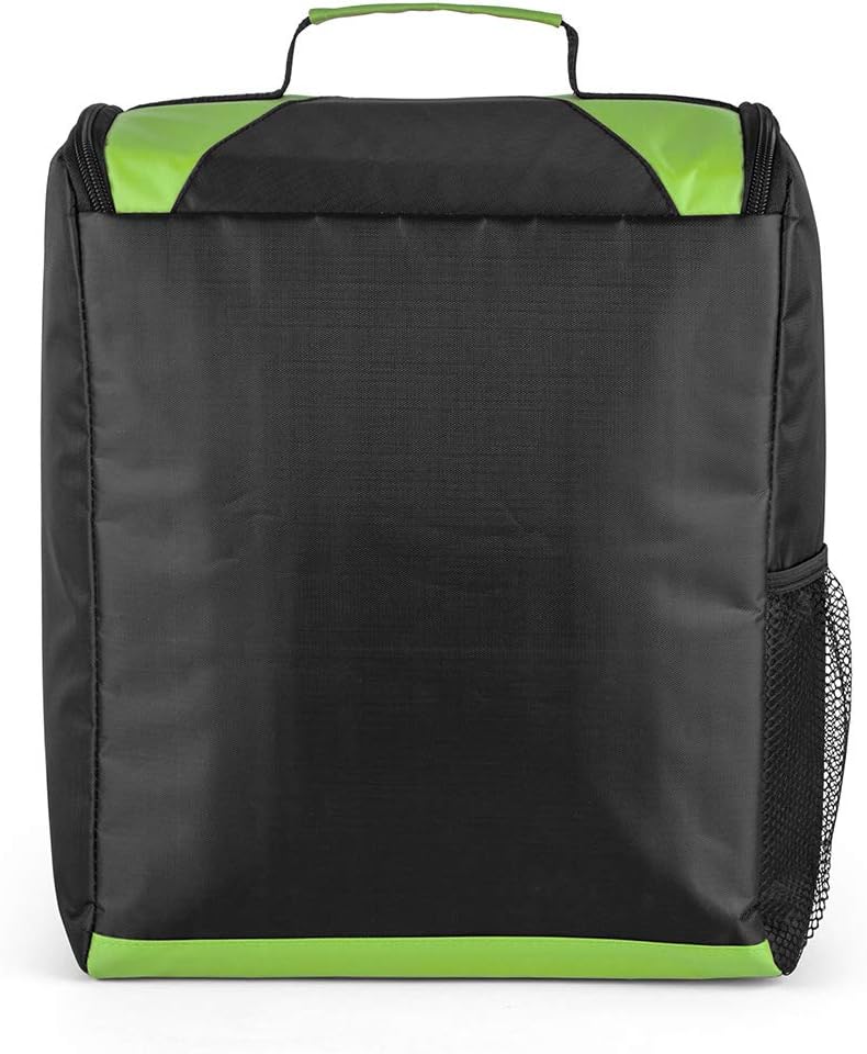 • UNIQUE DESIGN: Bag is equipped with wide flip zipper closure at top for maximum fill potential. Bag is colored black with contrast green colored flip closure and base.