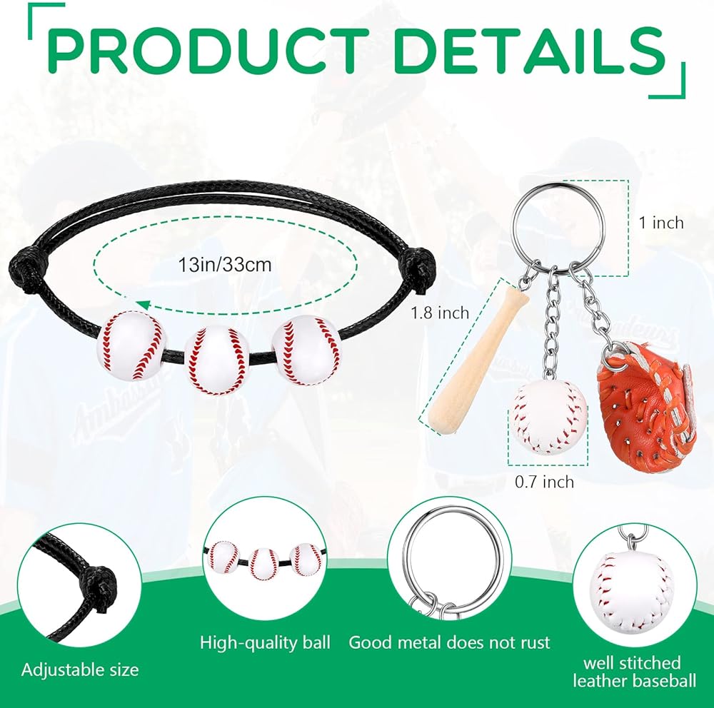 Party Gifts: these baseball glove keychains and adjustable baseball bracelets can be applies as baseball or sport theme party favors, birthday party supplies, goodie bag fillers, team incentives, backpack pendents, handbag decorative accessories and more