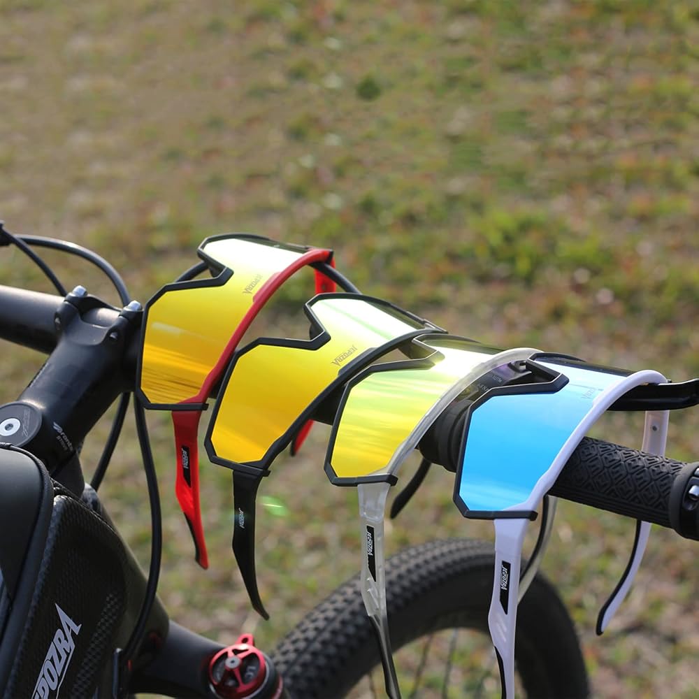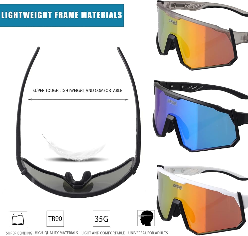 【خفيفة للغاية/متينة】إطارات نظارات ركوب الدراجات مصنوعة من مادة TR90 خفيفة الوزن ومتينة، حتى إذا كنت ترتديها لفترة طويلة، فلن تشعر بعدم الراحة والتعب. العدسات مصنوعة من البولي كربونات، وهي مقاومة للصدمات والخدش ومتين ومقاوم للكسر.