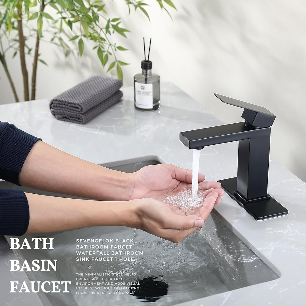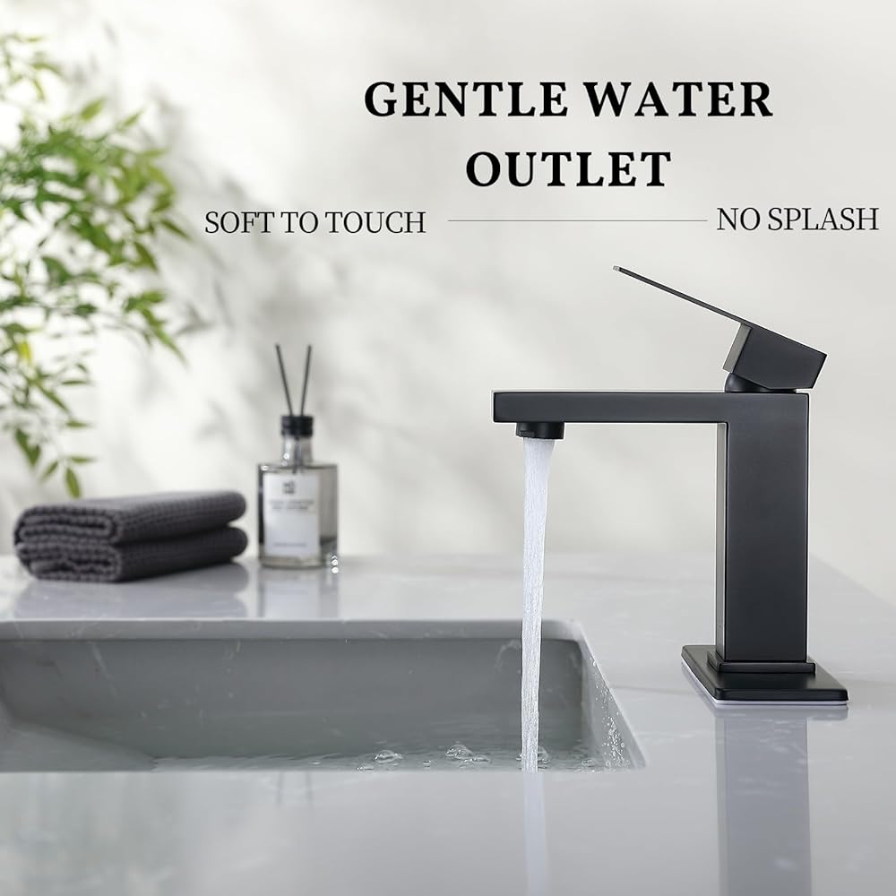 • ◀【بدون رذاذ، ماء ناعم】صنبور حمام بفتحة واحدة أسود مع تصميم رافعة واحدة، وهو سهل التحكم في التدفق ودرجة الحرارة، ومعدل تدفق المياه هو 1.2 جالون في الدقيقة. الصنابير السوداء مجهزة بجهاز تهوية يمكنه مزج الهواء والماء بشكل كامل، مما يجعل تدفق المياه غنيًا بالفقاعات وناعم الملمس، ولا يتطاير.