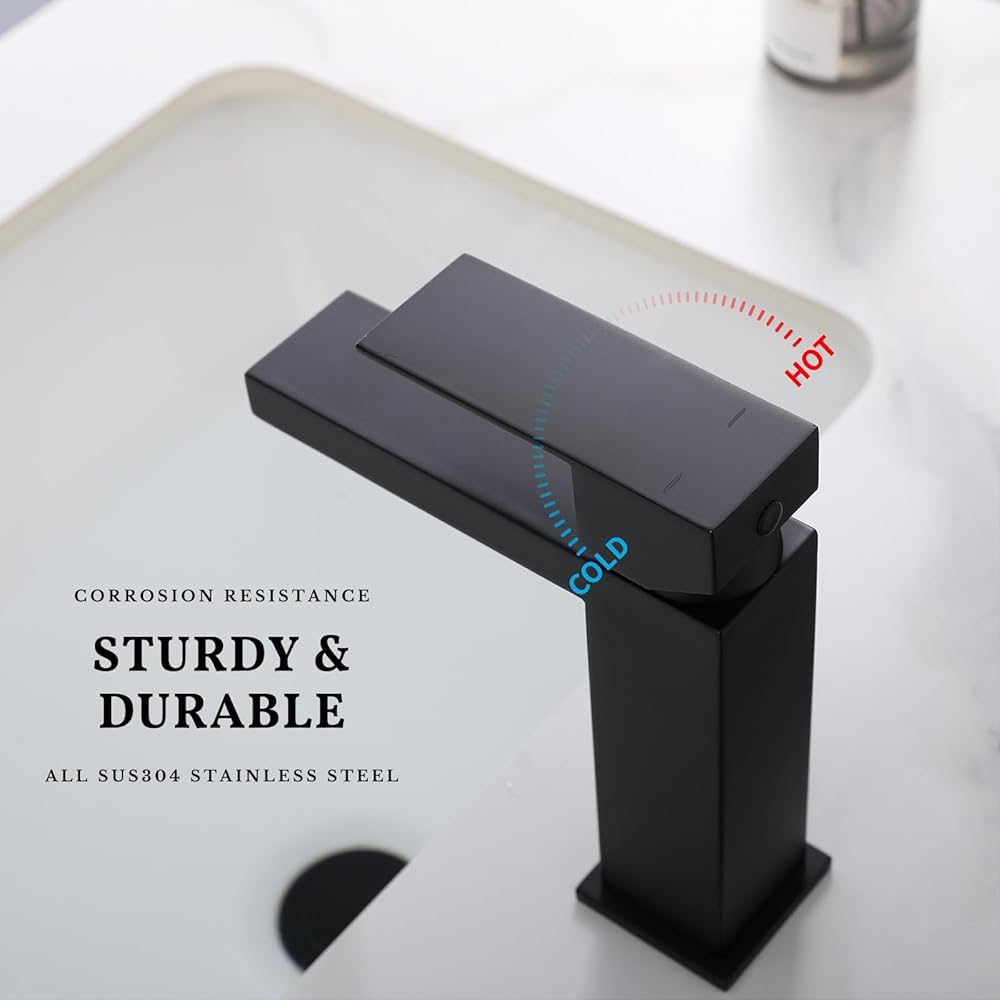 • ◀ 【جميع الفولاذ المقاوم للصدأ SUS304 الفاخر، بدون الرصاص】صنبور الحمام ذو الفتحة الواحدة باللون الأسود غير اللامع مصنوع من الفولاذ المقاوم للصدأ SUS304 عالي الجودة والأسود اللامع يوفر مقاومة فائقة للتآكل، ومقاوم للصدأ، والقوة، والمتانة مقارنة بالأنواع الأخرى من المعادن الموجودة عادة في تركيبات السباكة. . ضمان عدم التسرب ومكافحة الانفجار.