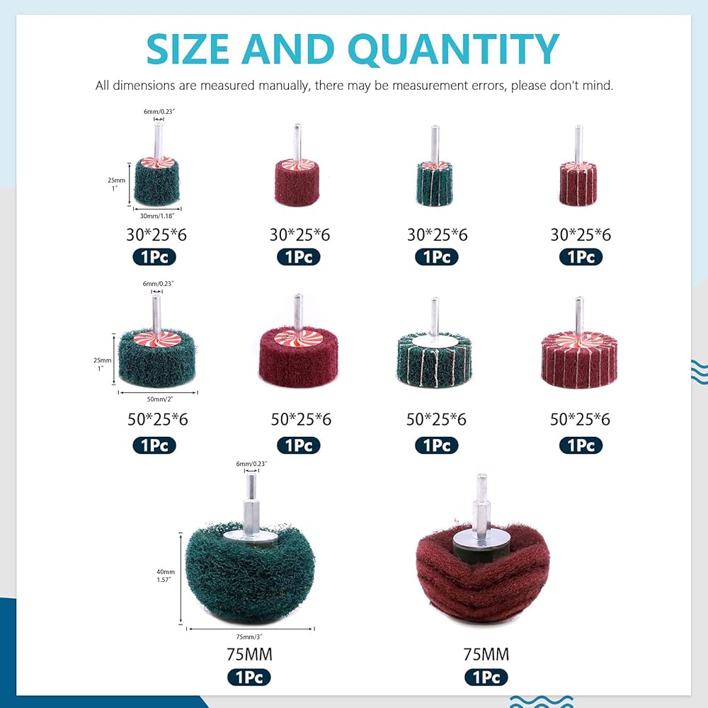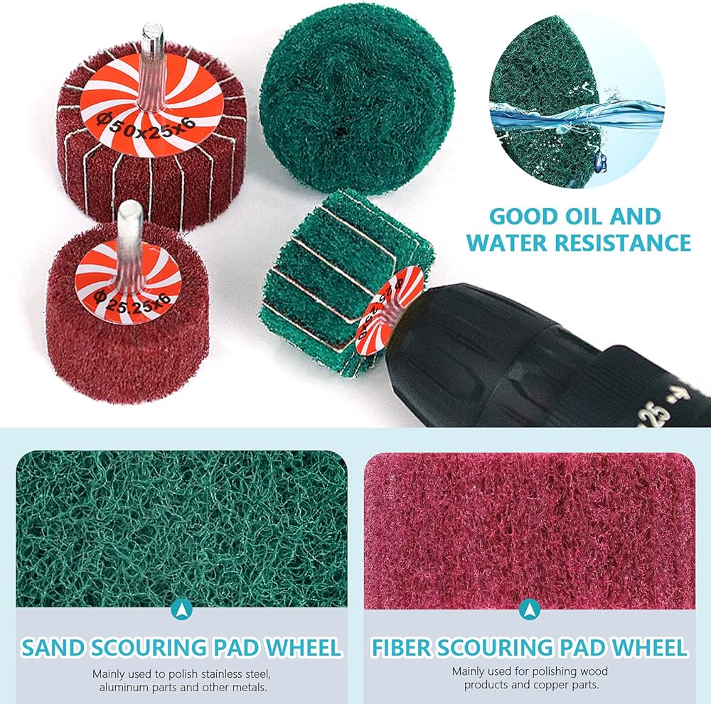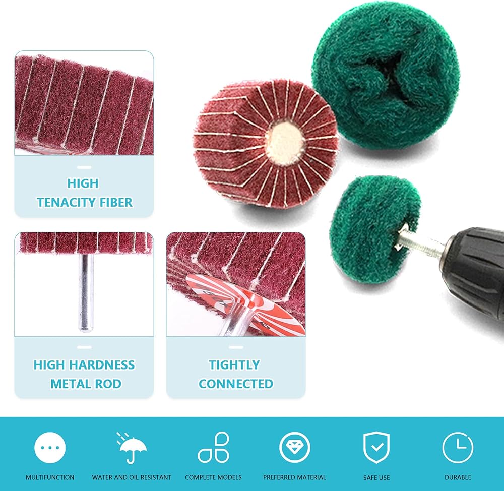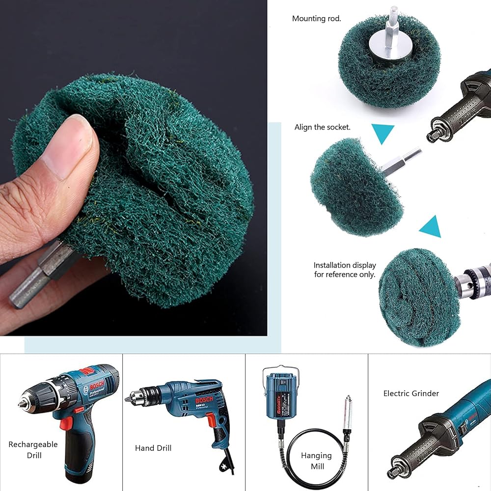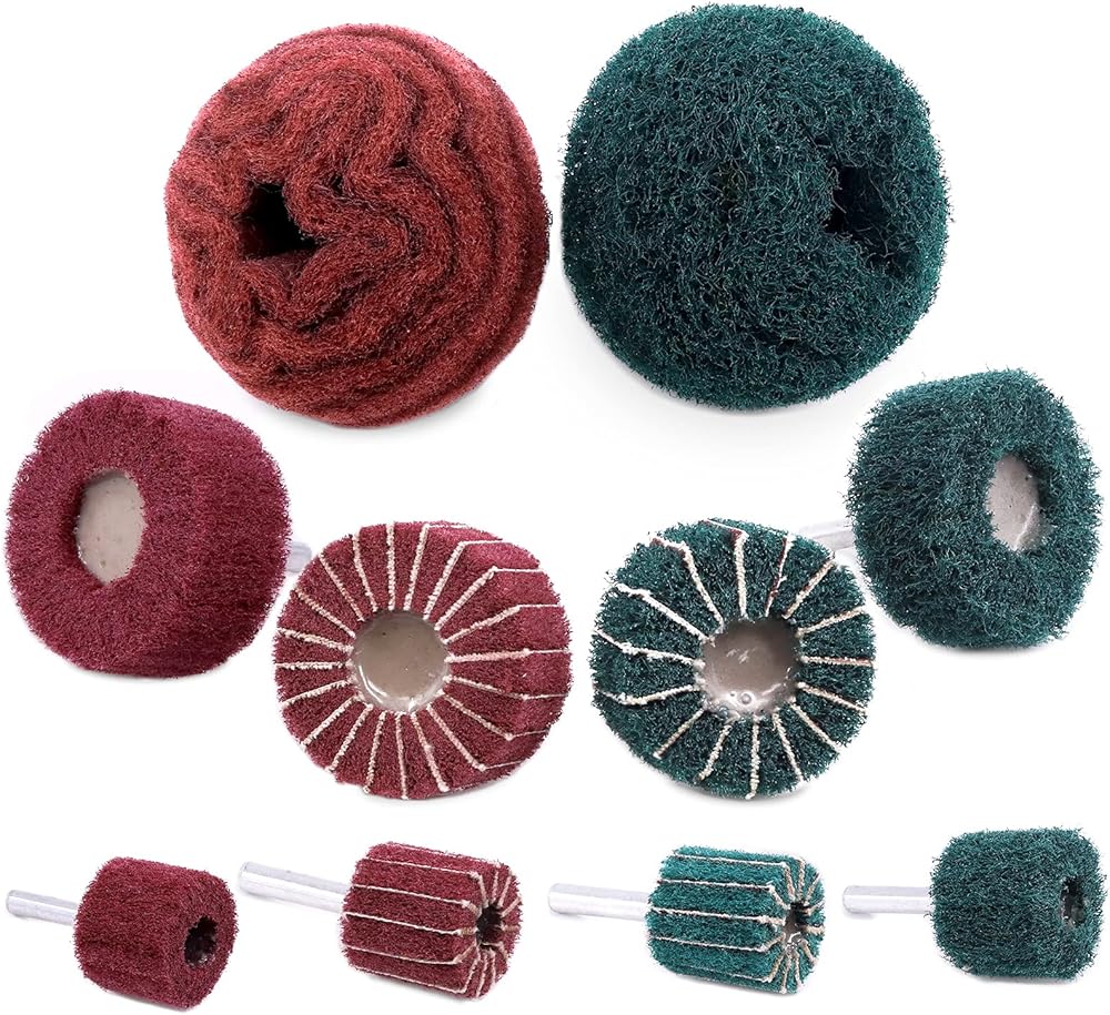 Cimeton 10Pcs Non Woven Abrasive Wheel Polishing Buffing Wheel Drill Attachment Set Green Red Non-woven Scouring Pads Polishing
