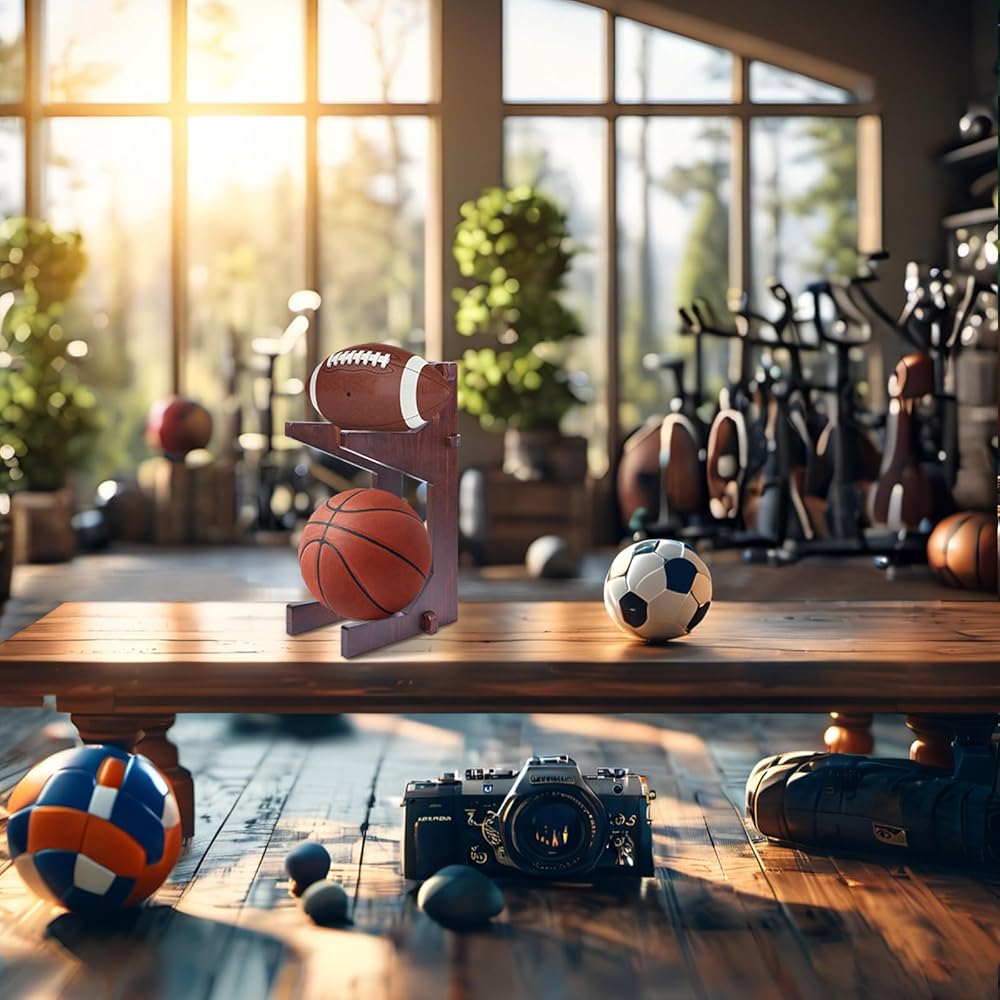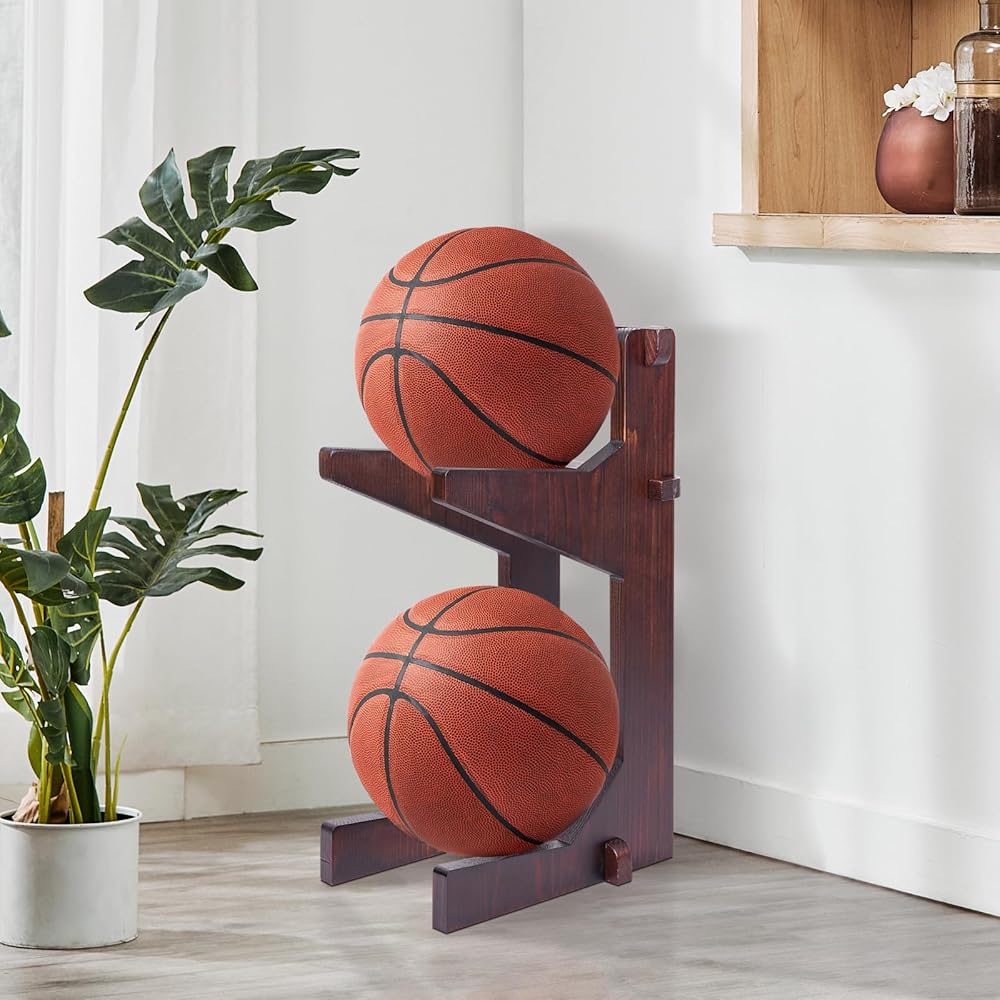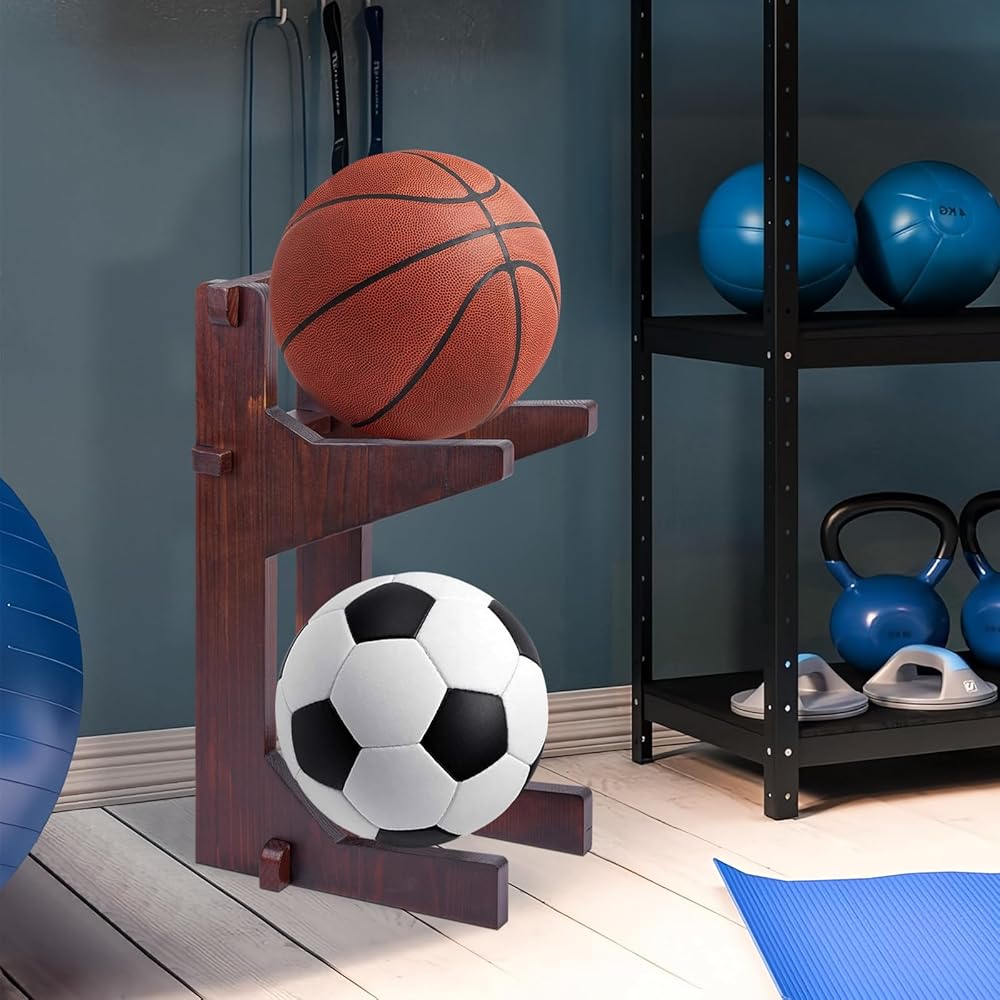 رف تخزين الكرة، حامل كرة السلة، رف تخزين كرة القدم الرجبي، رف تخزين كرة القدم، منظم المرآب من الخشب الصلب
