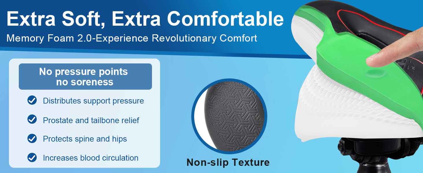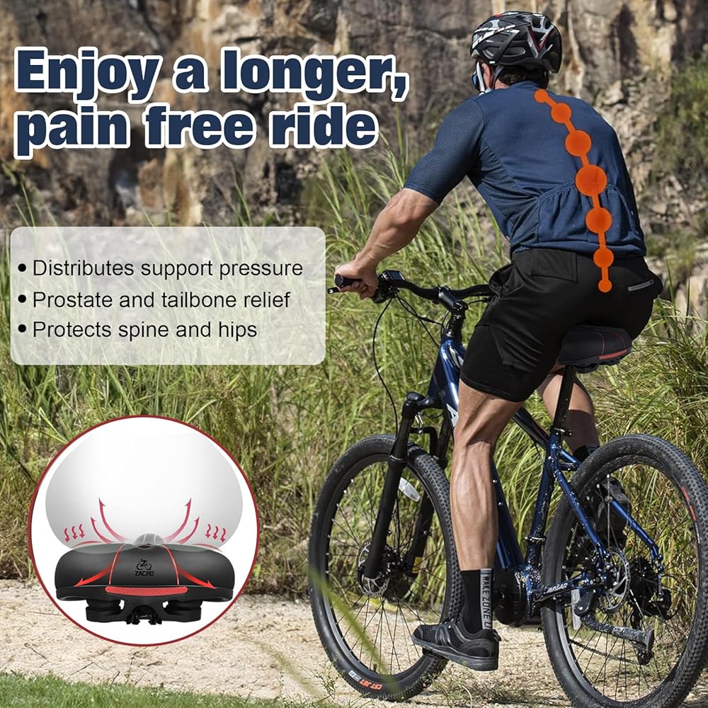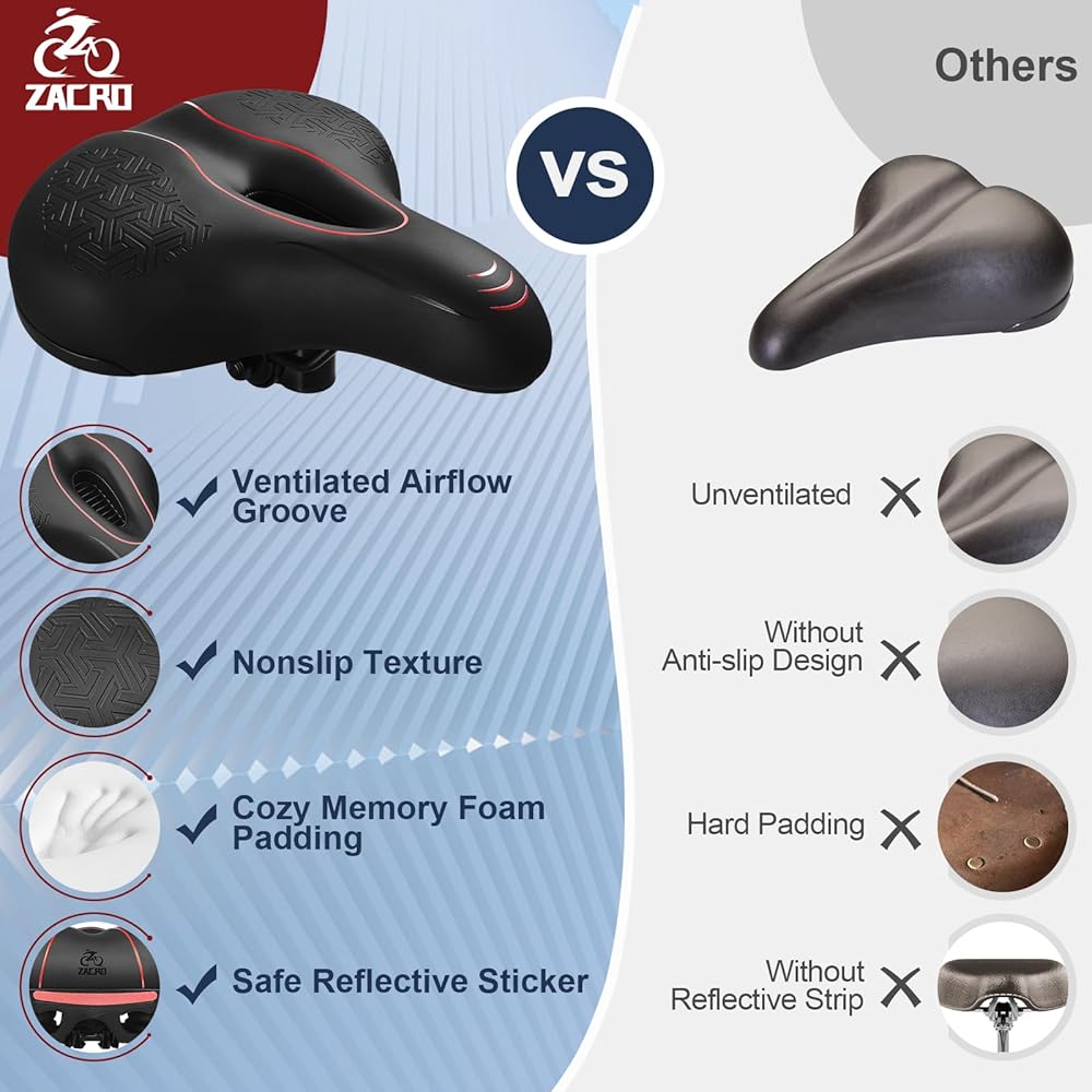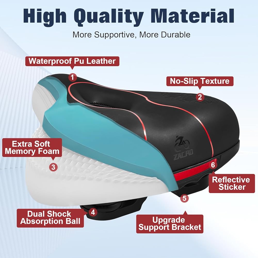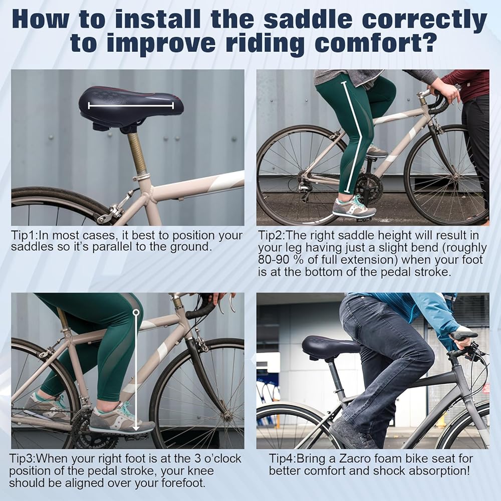【راحة لا مثيل لها】طبقة الإسفنج الذكي المطورة 2.0 من السرج تناسب جسمك تمامًا، وتمتص الصدمات من أجل رحلة سلسة لحماية الأرداف وتعزيز تجربة الركوب الخاصة بك. يضع Zacro معيارًا في الراحة وامتصاص الصدمات.