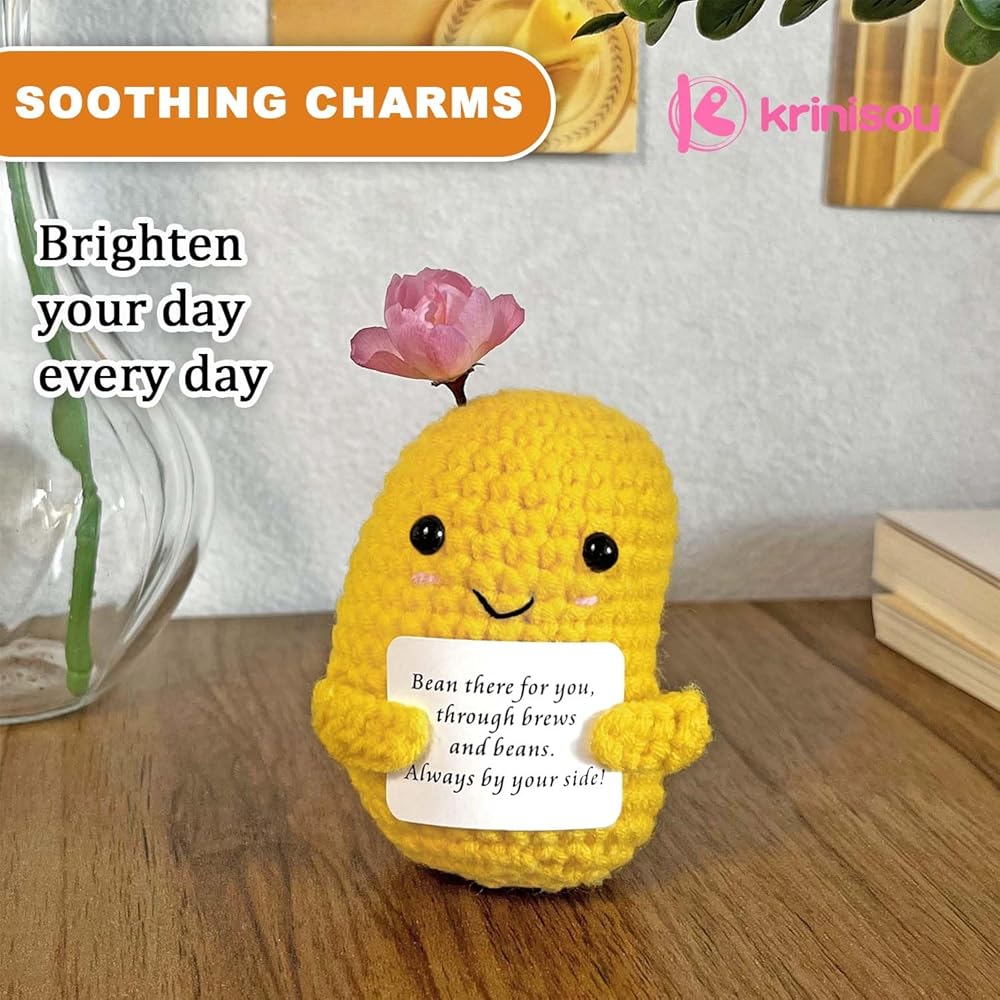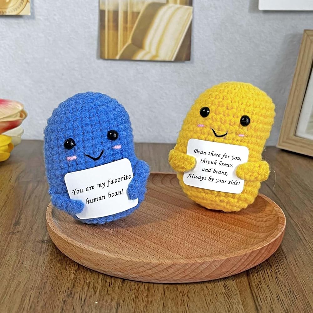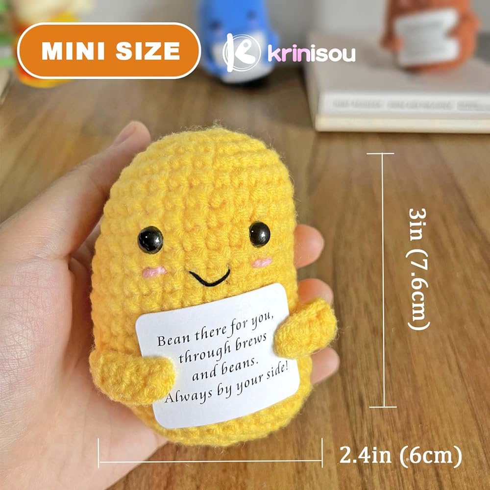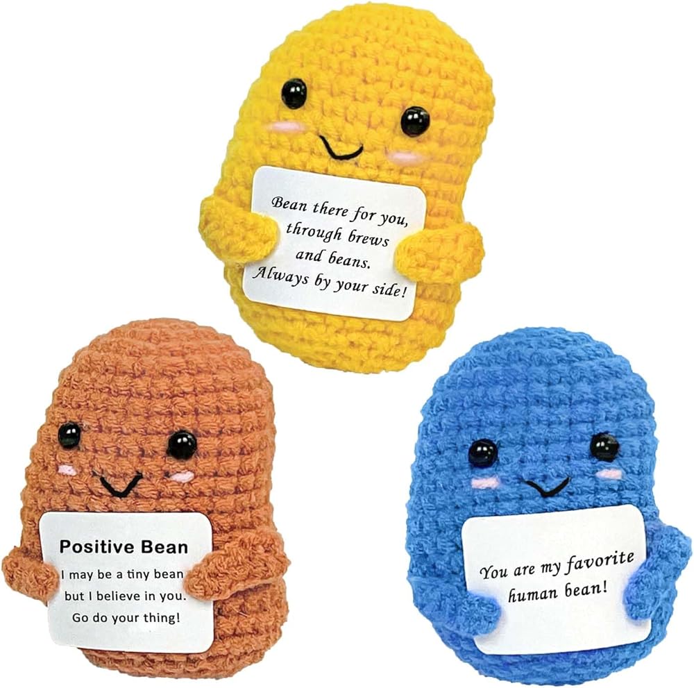 مجموعة حبوب القهوة الإيجابية من الكروشيه، 3 قطع من الخضروات الكروشيه ذات الدعم العاطفي مع بطاقة ملهمة، هدايا صغيرة للتشجيع للنساء والأصدقاء