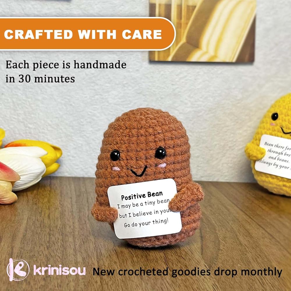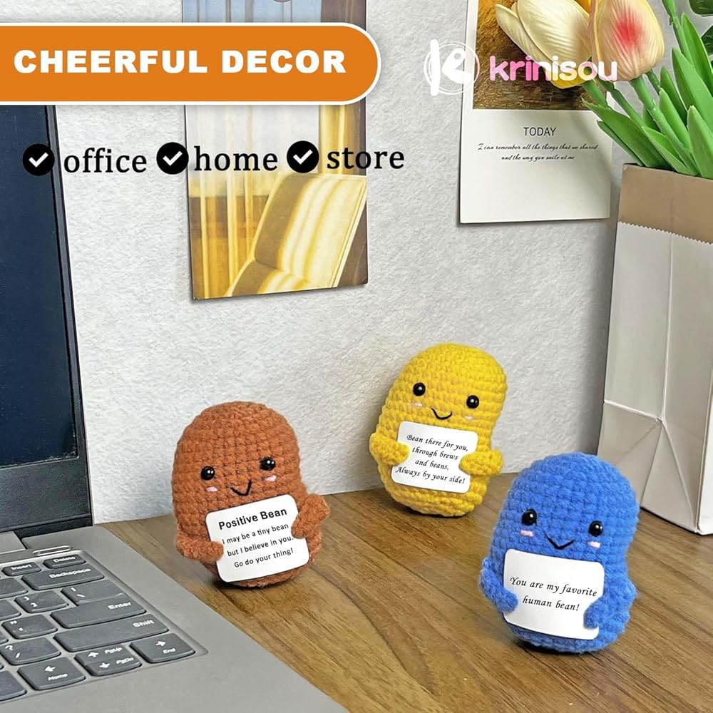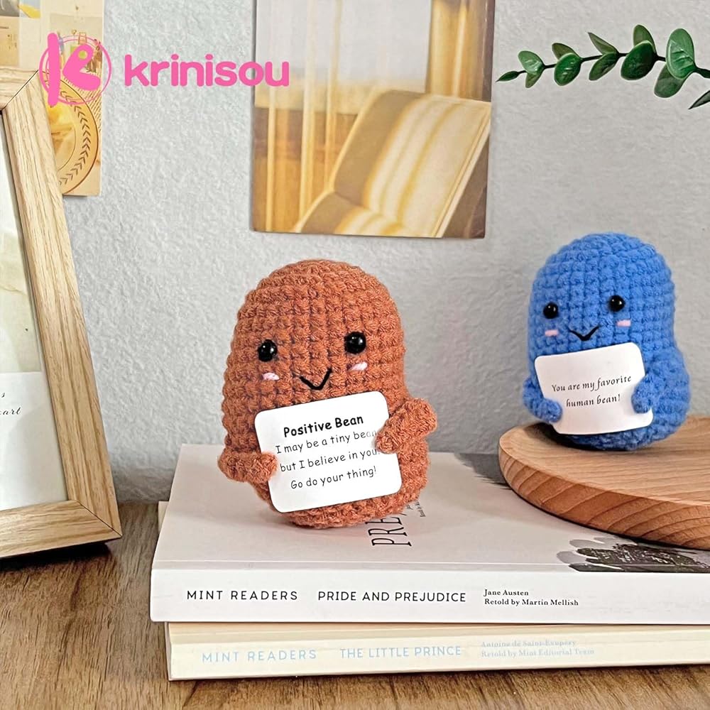 • أشياء إيجابية كروشيه ساحرة: تعرف على حبيباتنا الصغيرة المبهجة، كل منها تحمل بطاقة ملهمة بكلمات إيجابية. هذه الأشكال الرائعة ليست مجرد ديكور؛ إنها منارات صغيرة للقوة والفرح، مثالية لتلك الأيام الصعبة. دعهم يجلبون الابتسامة على وجهك والشعور بالراحة عندما تكون في أمس الحاجة إليها.