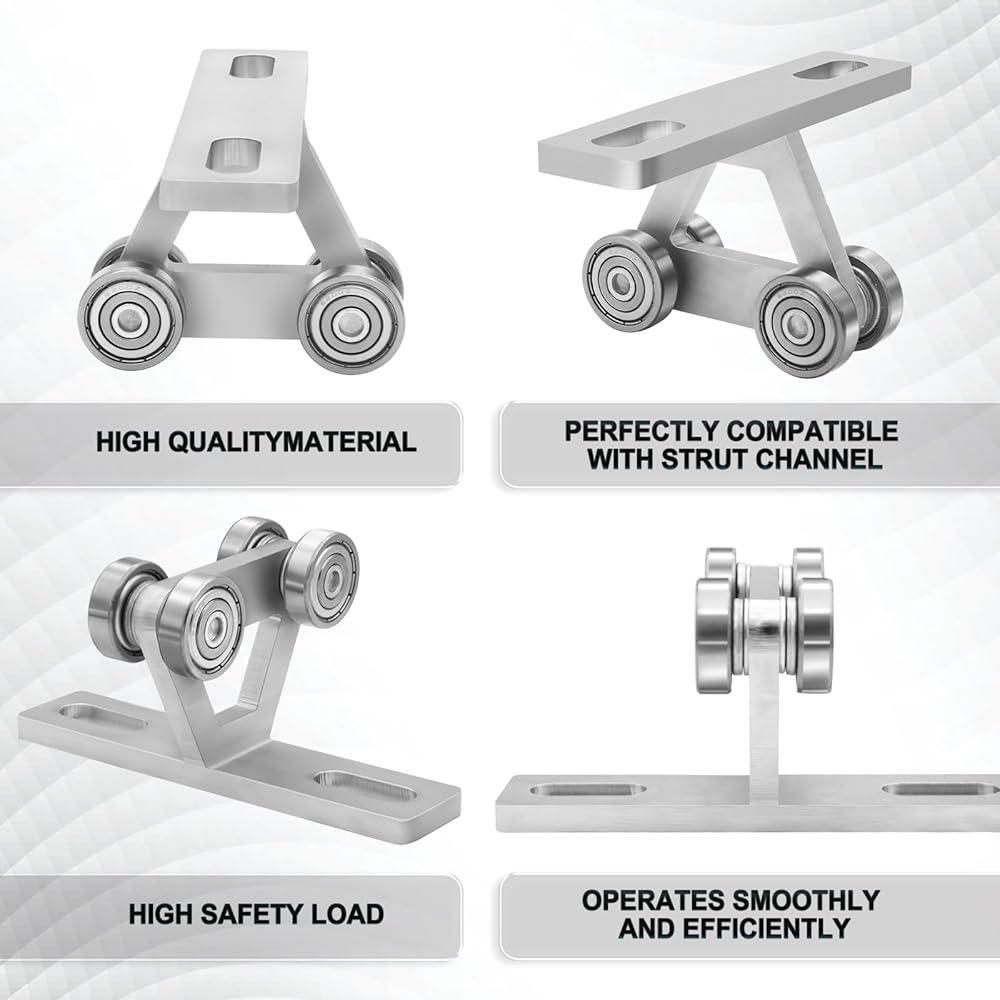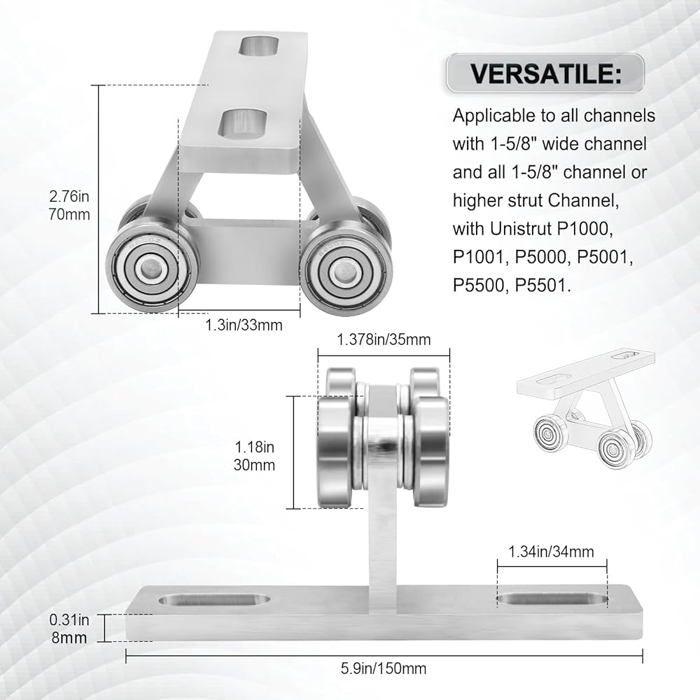 رافعة كهربائية ذات 6 عجلات، عربة دوارة سهلة التركيب، صامتة للاستخدام مع Unistrut بعرض 1-5/8 بوصة وجميع قنوات تبختر 1-5/8 بوصة أو قناة أطول (2)