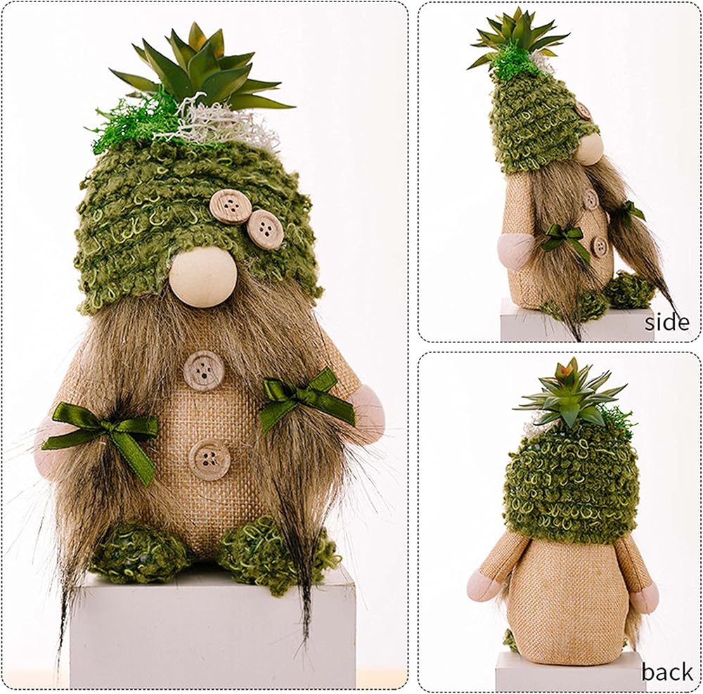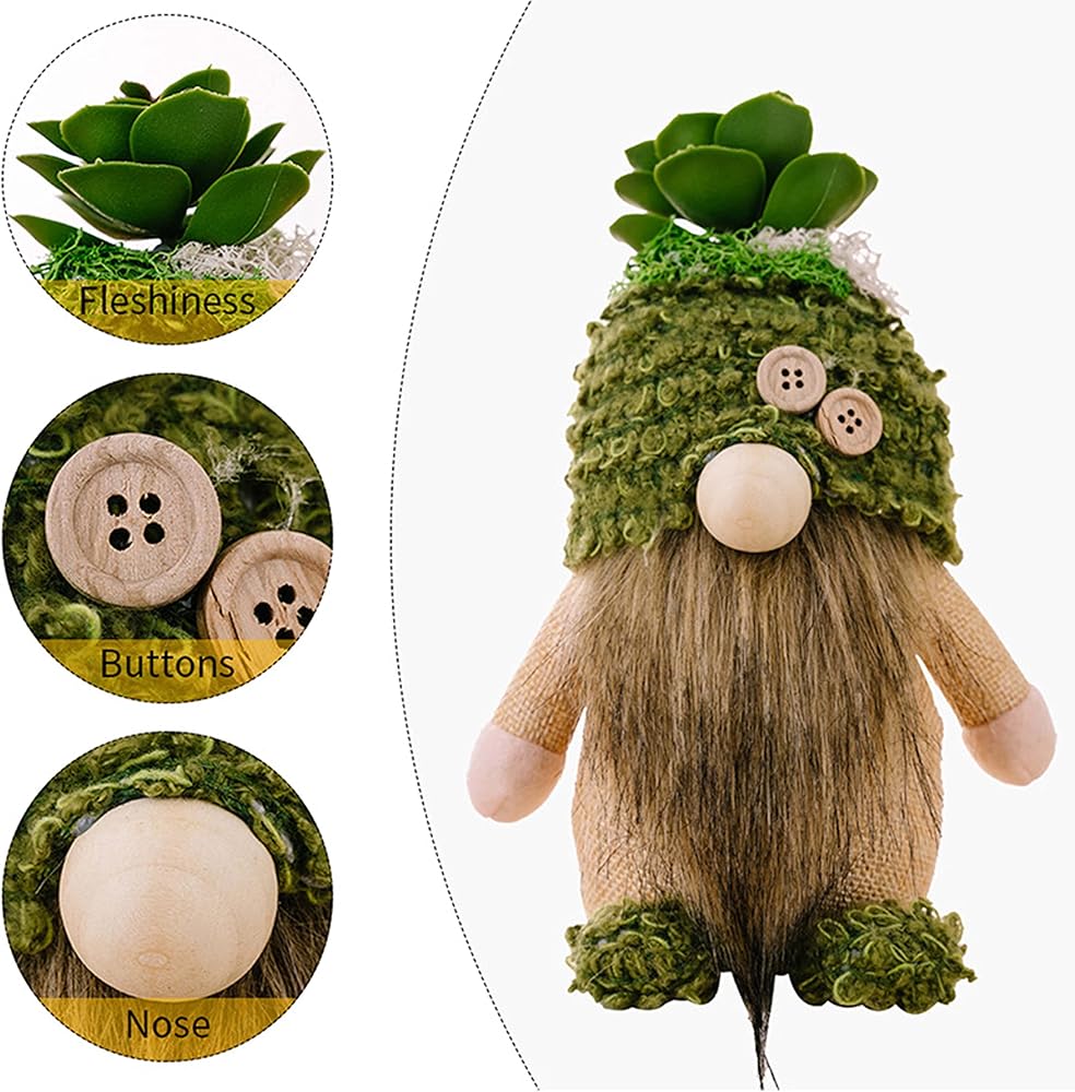 Cute Succelent Design - The body and hat of our gnomes plush are made of soft felt, the hat and feet are made of fluffy, grassy tactile material, and large succulents on the top of their head.
