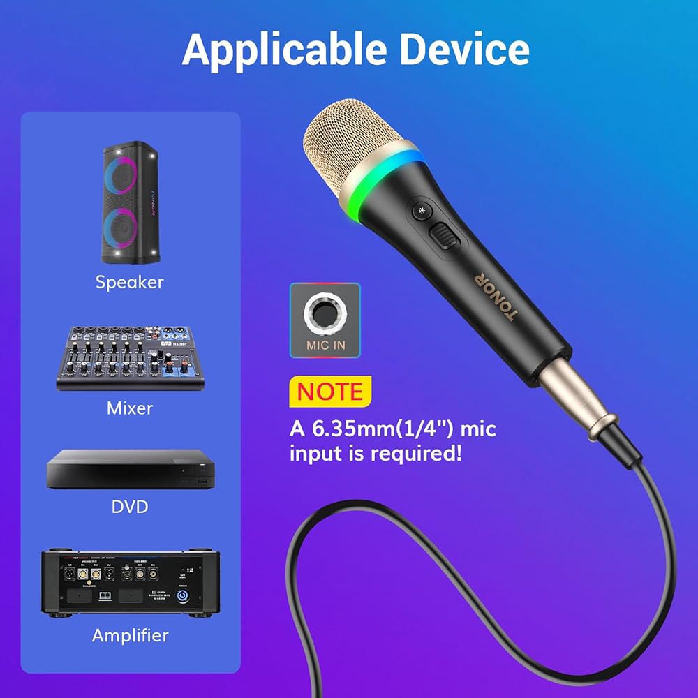 توافق واسع: يدعم ميكروفون الكاريوكي السلكي هذا الأجهزة المختلفة بمقبس ميكروفون 1/4 بوصة (6.35 مم)، بما في ذلك مشغلات DVD وأنظمة الصوت KTV ومكبرات الصوت والخلاطات ومكبرات الصوت وما إلى ذلك. يناسب جسمه ذو الحجم القياسي جميع حوامل الميكروفون القياسية، ويضمن كابل XLR المتضمن بطول 16.4 قدمًا (5 أمتار) تجربة أداء غامرة مع تركيز متواصل.