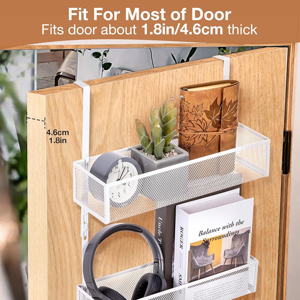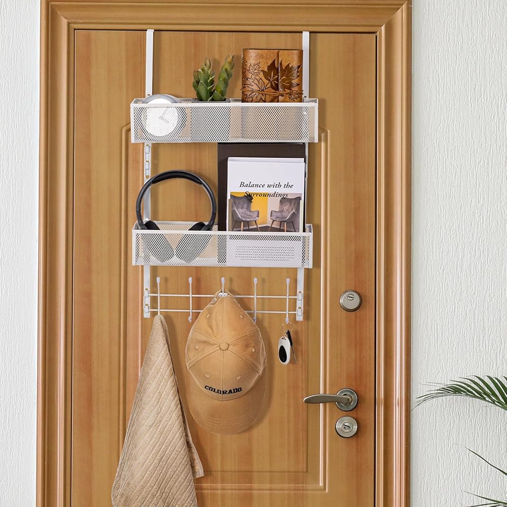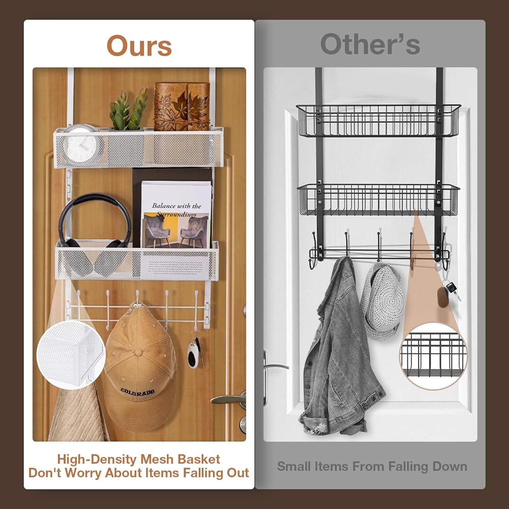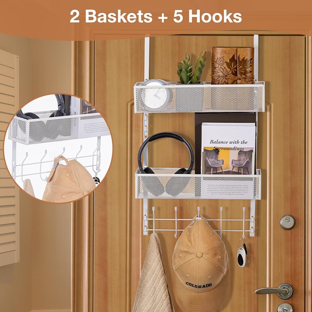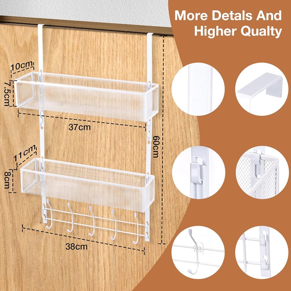 ❥【شماعة باب متعددة الوظائف】مع طبقتين، يحتوي الجزء الخلفي من منظم الباب على 5 خطافات وسلتين، وخطافات المعاطف أو المناشف أو أدوات المطبخ، والسلال لتخزين العناصر الأصغر مثل مستلزمات الحمام أو المفاتيح أو المطبخ. مُكَمِّلات.