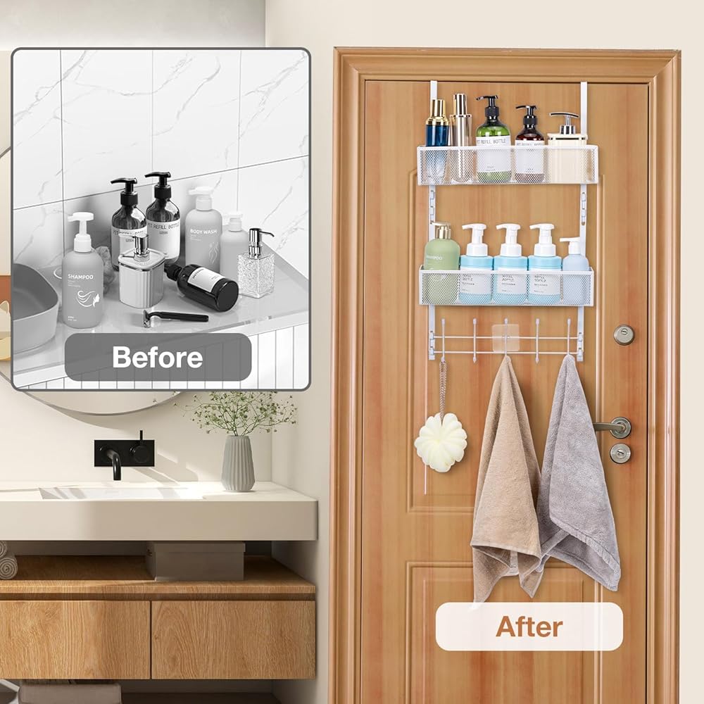 ❥【منظم سلة موفر للمساحة فوق الباب】مصمم لزيادة مساحة معيشتك إلى أقصى حد، يستخدم منظم التخزين الموجود فوق الباب بذكاء المساحة المهدرة غالبًا خلف الأبواب. يعد رف المناشف الموجود فوق الباب حلاً مثاليًا للشقق الصغيرة أو الغرف حيث كل بوصة مهمة، مما يوفر سعة تعليق وتخزين واسعة دون إحداث فوضى في غرفتك.
