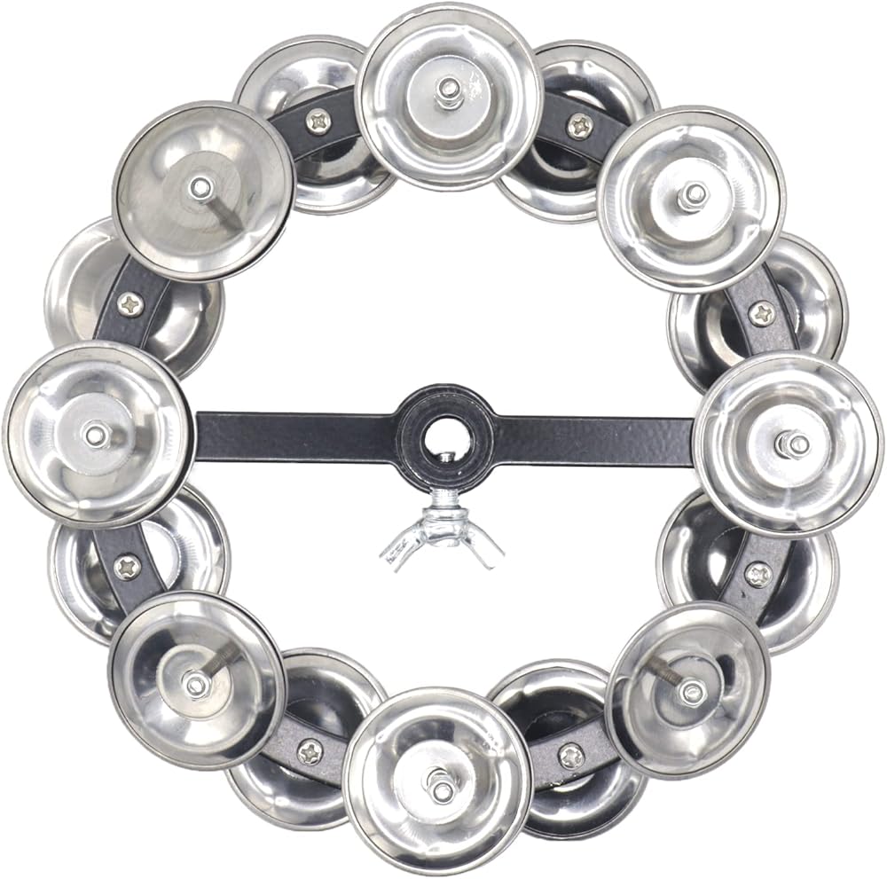 صف مزدوج من الصنج هيهات تامبورين، مجموعة طبلة قابلة للتركيب مع 8 نغمات فولاذية مزدوجة الصف، دف ذو قبعة عالية احترافية، حلقة قرع طبلة ملحقة من الصنج فضية