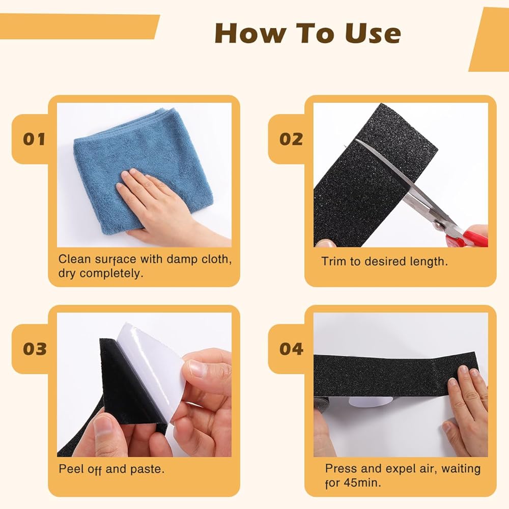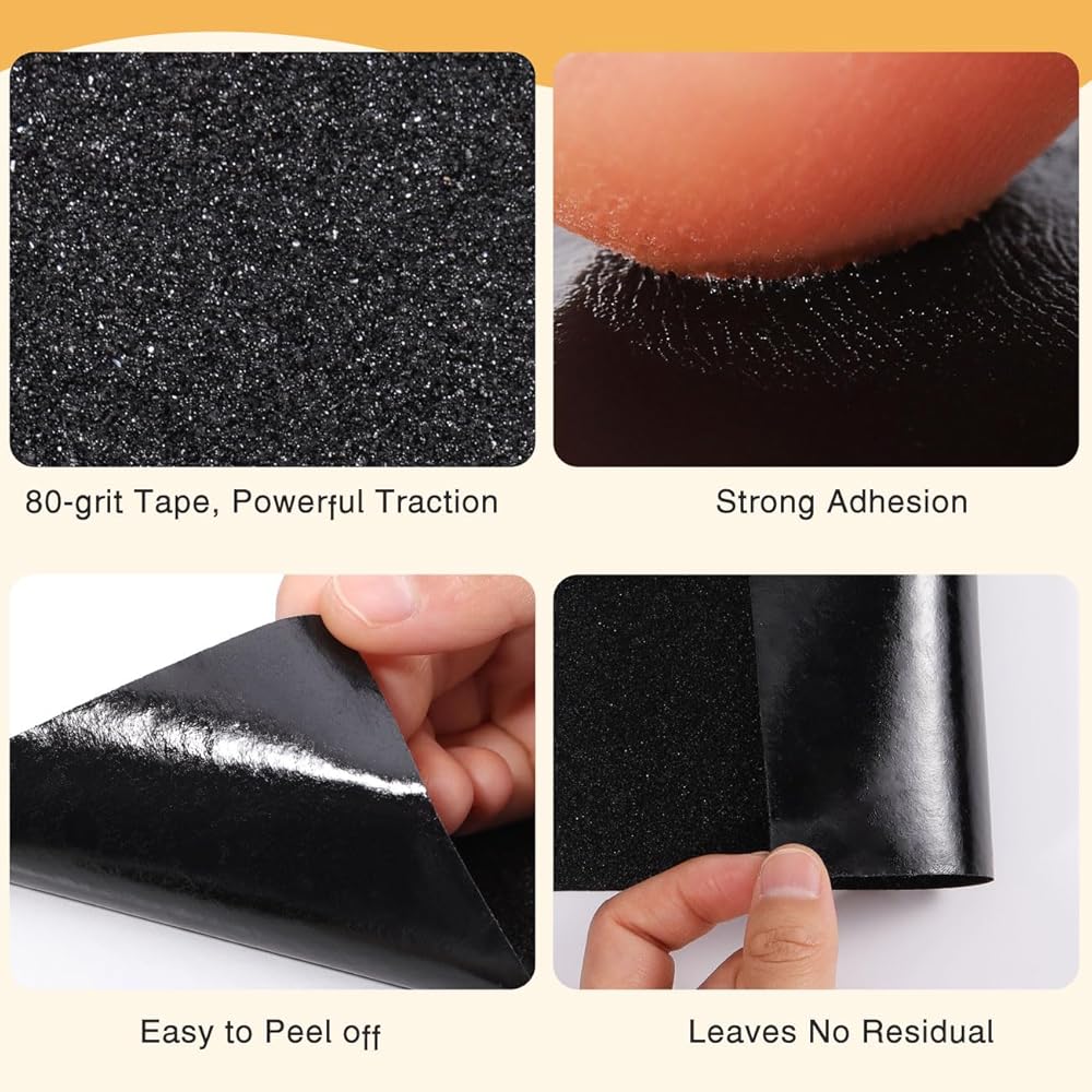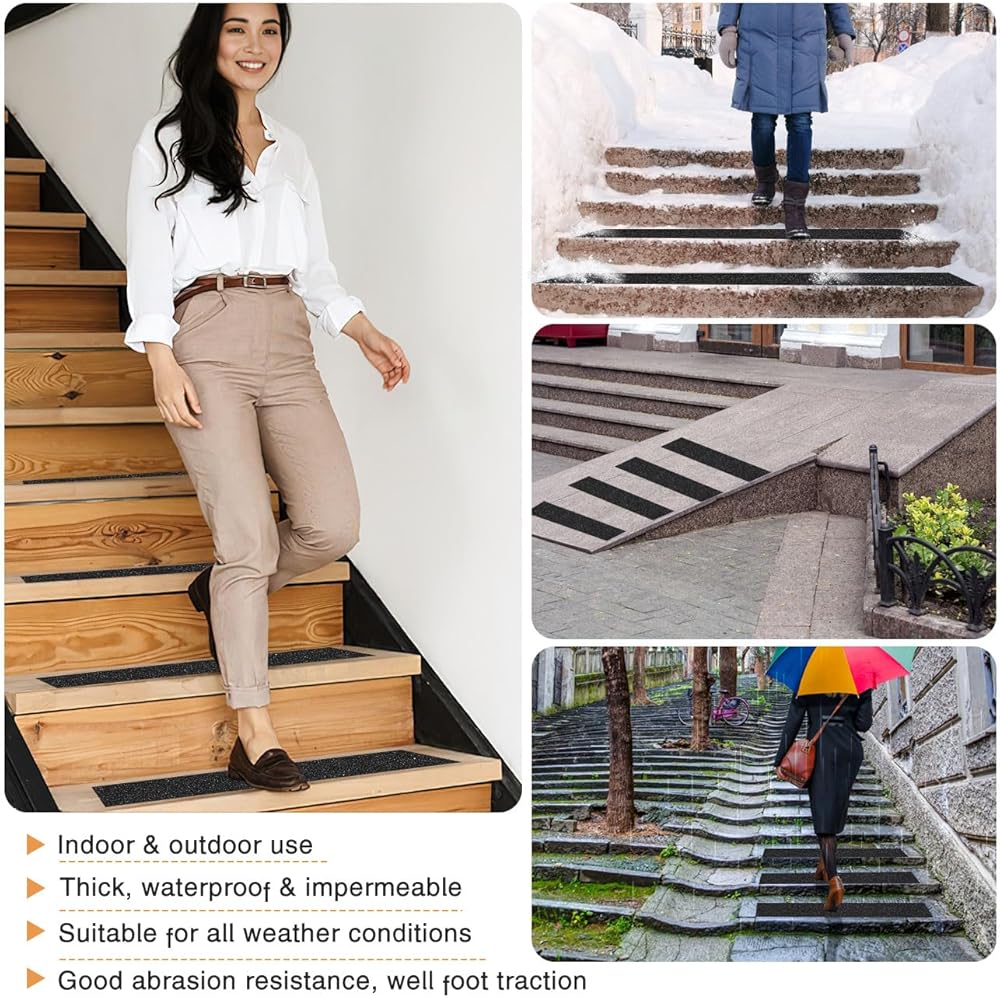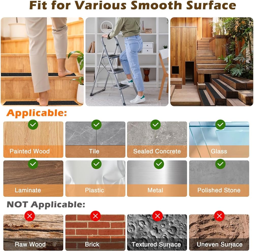 Widely Application: Anti skid tape for steps outdoor is strong adhesion with good traction, easily stick to most surfaces, including smooth coverings. Such as wood, tile, stone, concrete, metal, plastic and glass, all of which require extra foot traction.