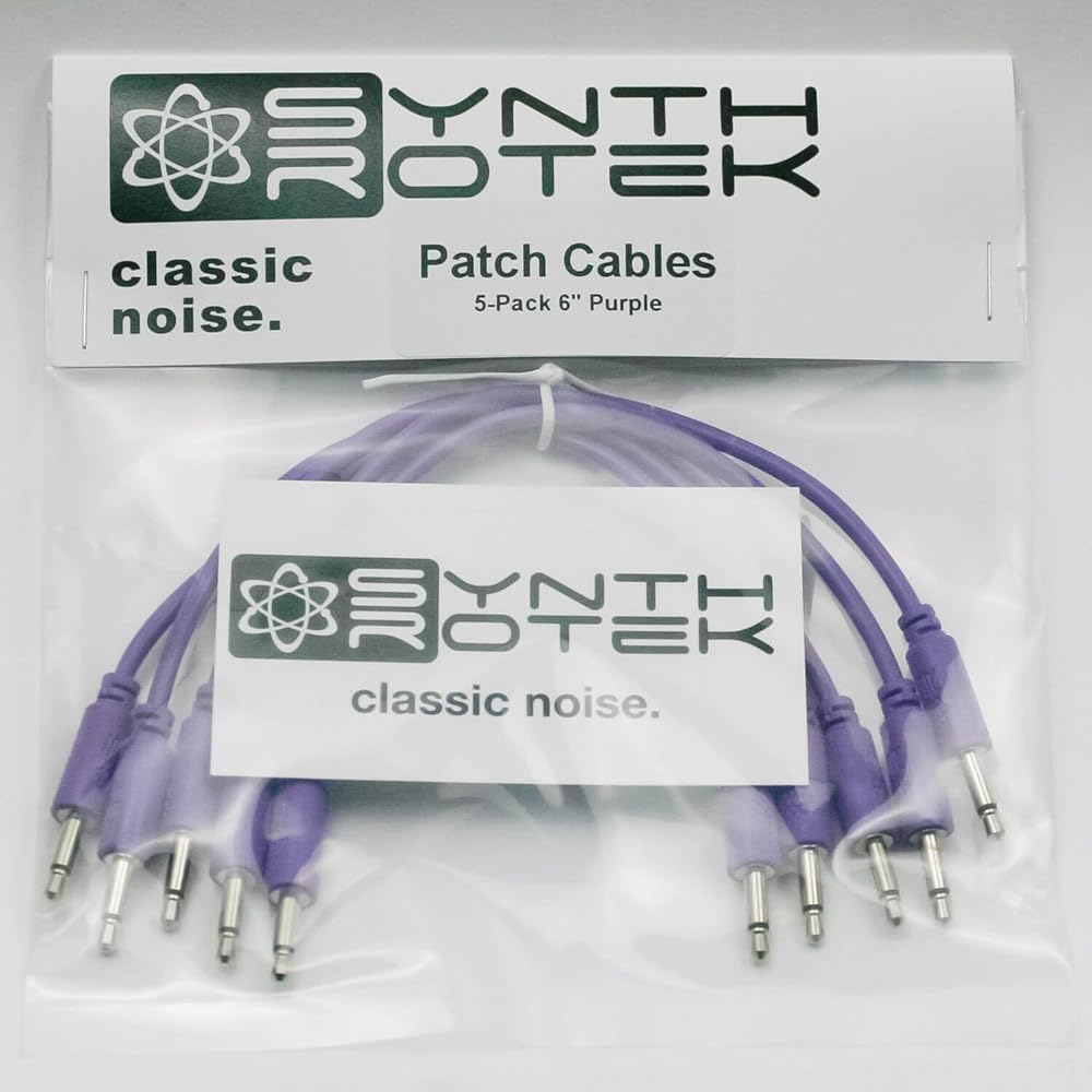 Synthrotek's Eurorack patch cables are designed for flexibility, durability and high fidelity. They hold their form well, but are not too stiff. The jacks are slim and low-profile for easy patching. Comes in packs of 5. Specifications: Slim, low-profile nickel-plated jacks. Low-loss spiral-wound copper shield. 99.99% pure, oxygen-free copper wire. Cable sizes are approximate.