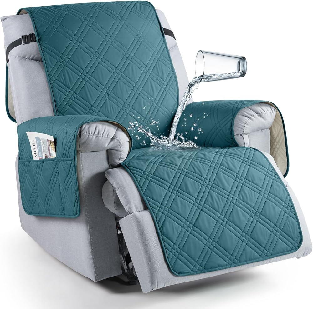 TAOCOCO 100% Waterproof Recliner Chair Cover, Non Slip Recliner Covers for Recliner Chair with Pocket, Washable Reclining Chair Cover Furniture Protector for Kids, Dogs