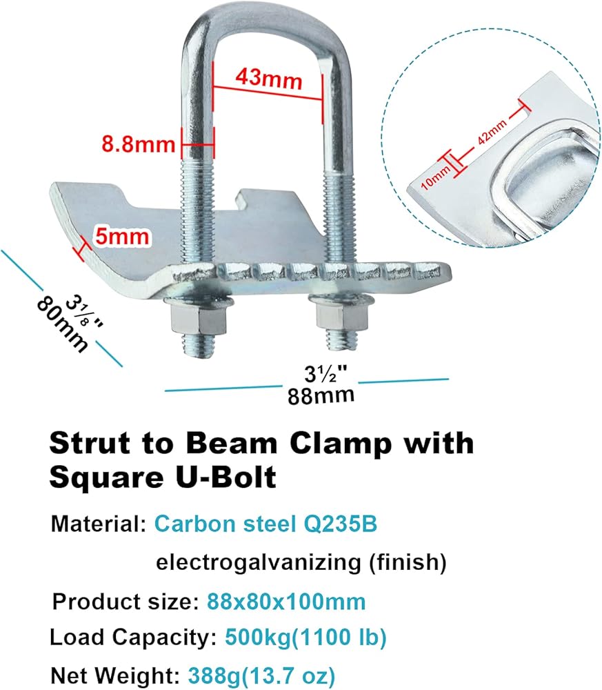 4 قطع من مشبك شعاع U-Bolt، يناسب قناة تبختر 13/16 بوصة و1-5/8 بوصة، فولاذ كربوني مجلفن كهربائيًا، سمك 5 مم، أقصى حمل 1100 رطل