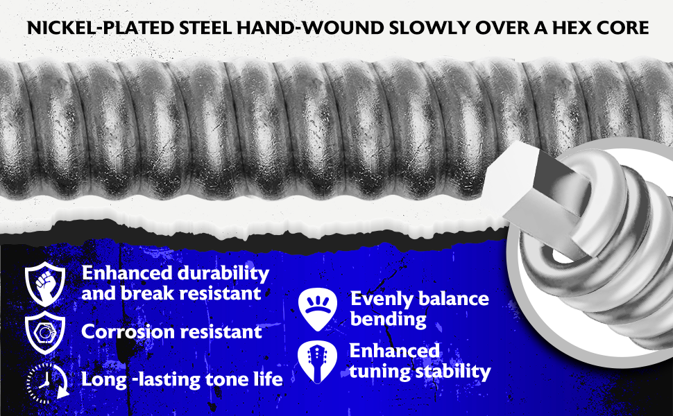 سهولة اللعب للمبتدئين أو عازفي الجيتار المخضرمين. تتميز سلسلة الجيتار الكهربائية الخاصة بنا بنسبة عالية من النواة إلى الالتفاف، مما يجعل الانحناء والعزف أسهل، بغض النظر عن مستوى الخبرة والتقنية. مثالية لجميع أنواع الجيتارات الكهربائية.