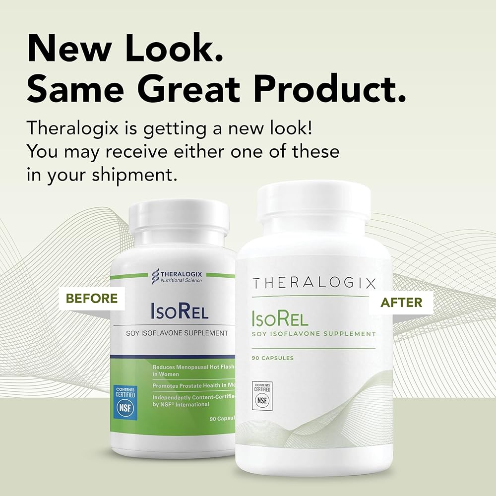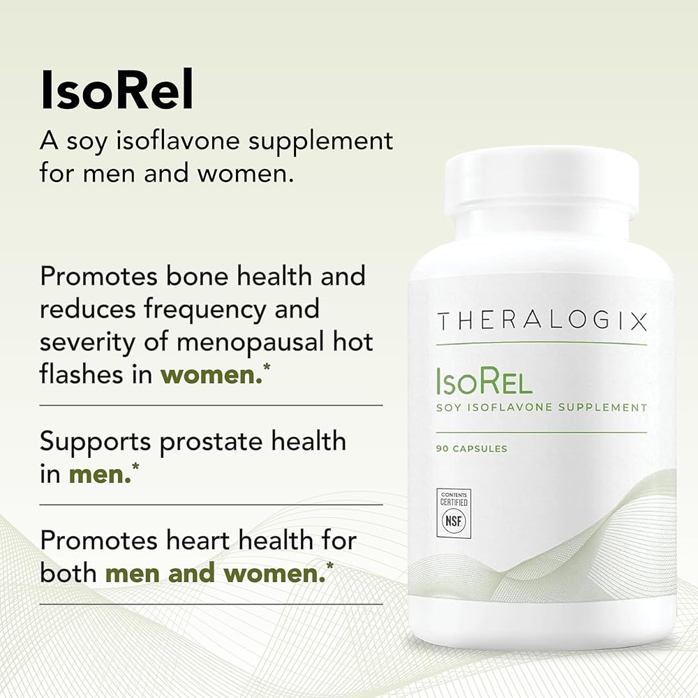مكمل مستخلص فول الصويا الكامل من Theralogix IsoRel - كمية كافية لمدة 90 يومًا - دعم انقطاع الطمث للمساعدة في الهبات الساخنة - دعم صحة البروستاتا للرجال - معتمد من NSF - 90 كبسولة