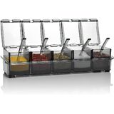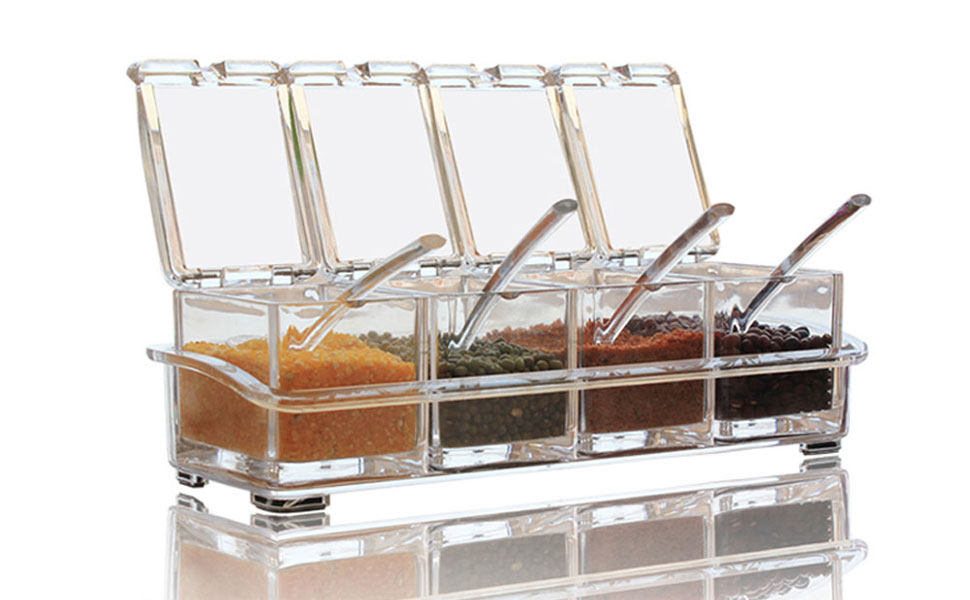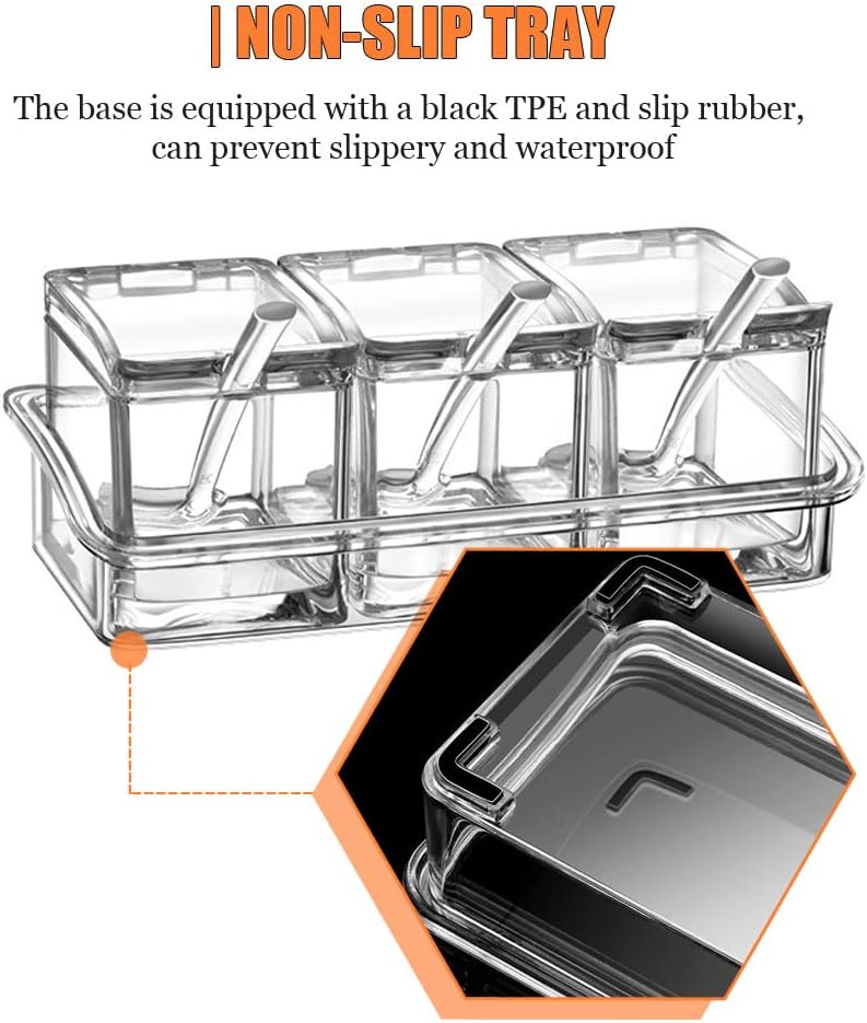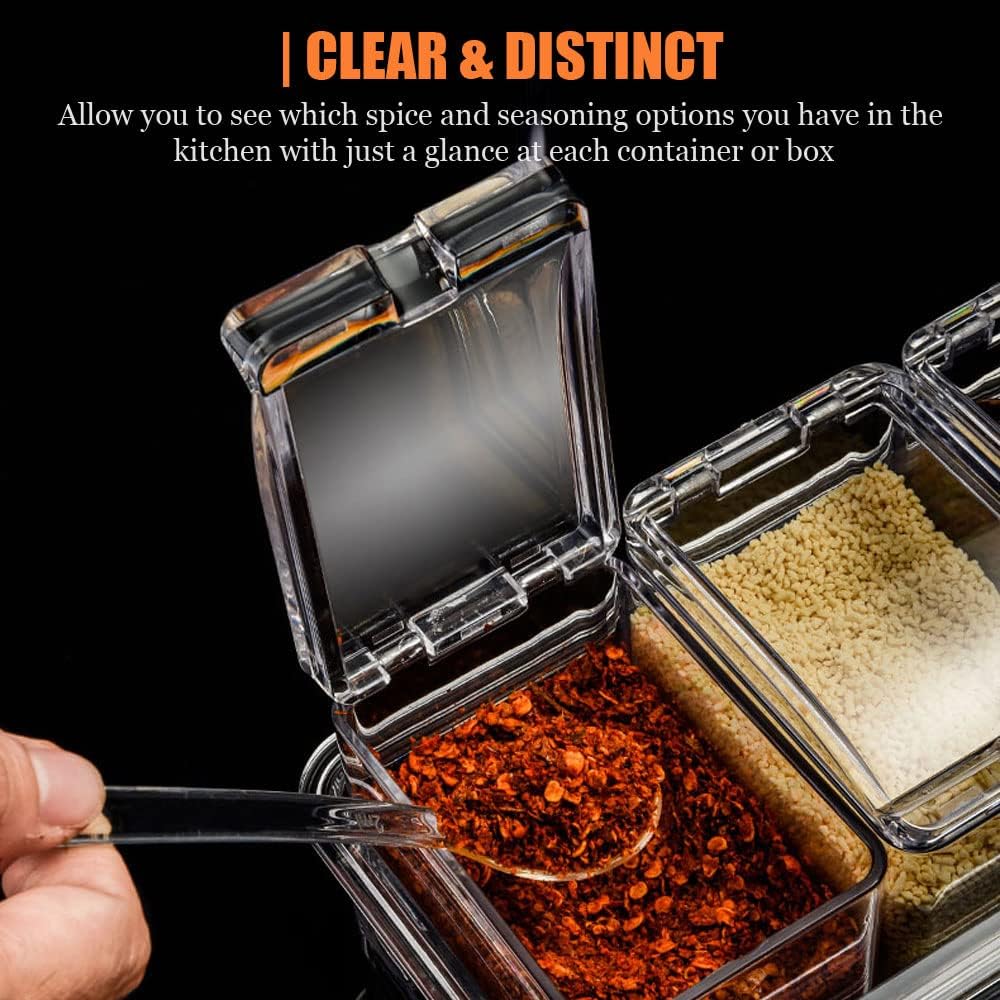 - 2. 【مكونات الراحة 】: 4 موزعات بهار و4 ملاعق تقديم متضمنة، مع صينية غير قابلة للانزلاق لحماية جميع صناديق التوابل.