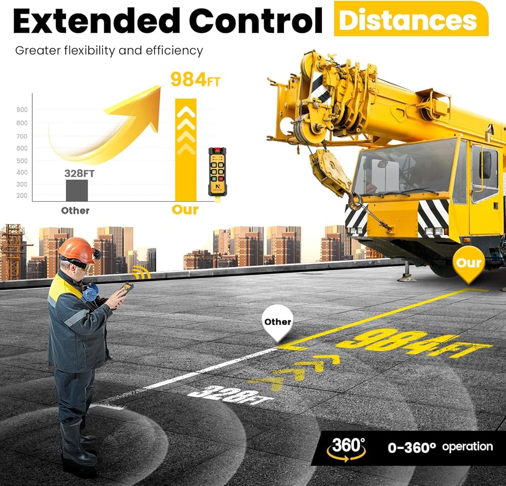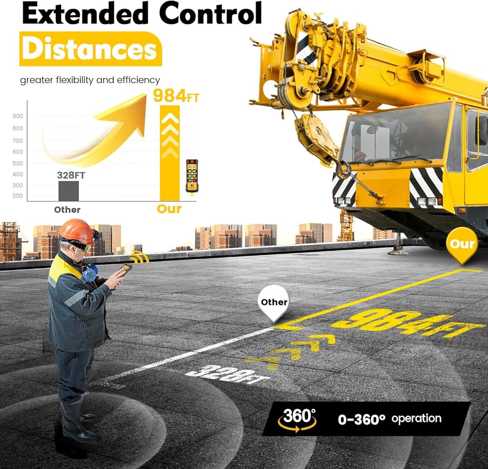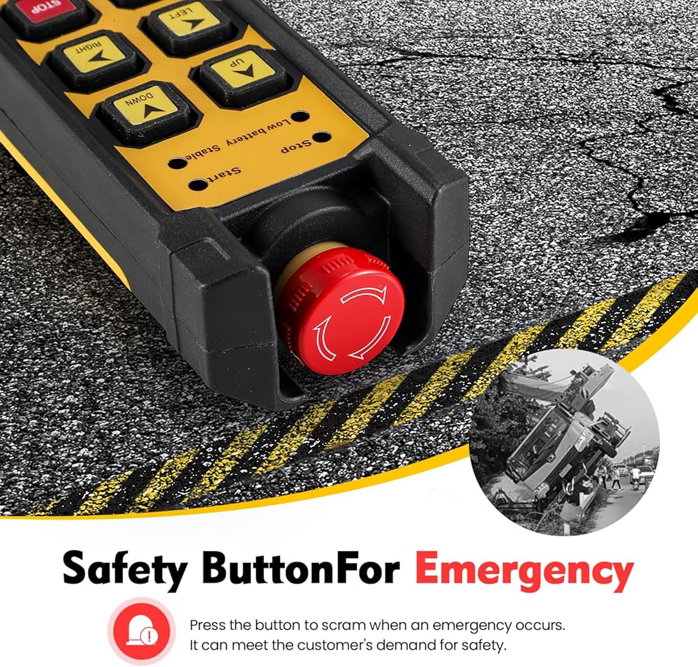 [مسافة التحكم 984FT]: بالمقارنة مع الأجهزة الأخرى، فإن جهاز التحكم عن بعد الخاص بالرافعة لديه نطاق تحكم واسع، مما يسمح للمشغلين بالتحكم في المعدات دون عناء من مسافات أكبر. قل وداعًا للقيود ورحب بإمكانيات التحكم الموسعة التي تضمن الكفاءة والسلامة في كل مهمة.