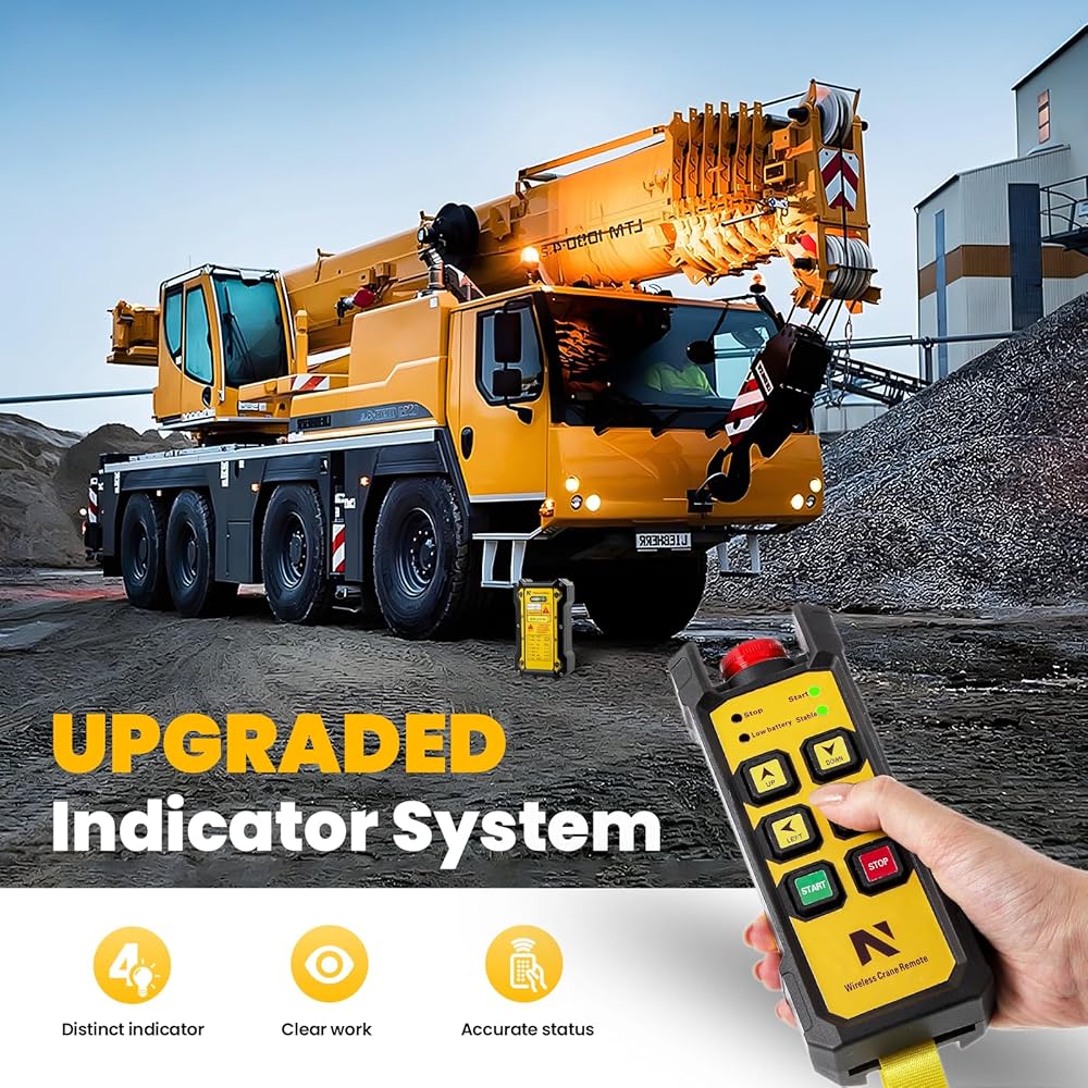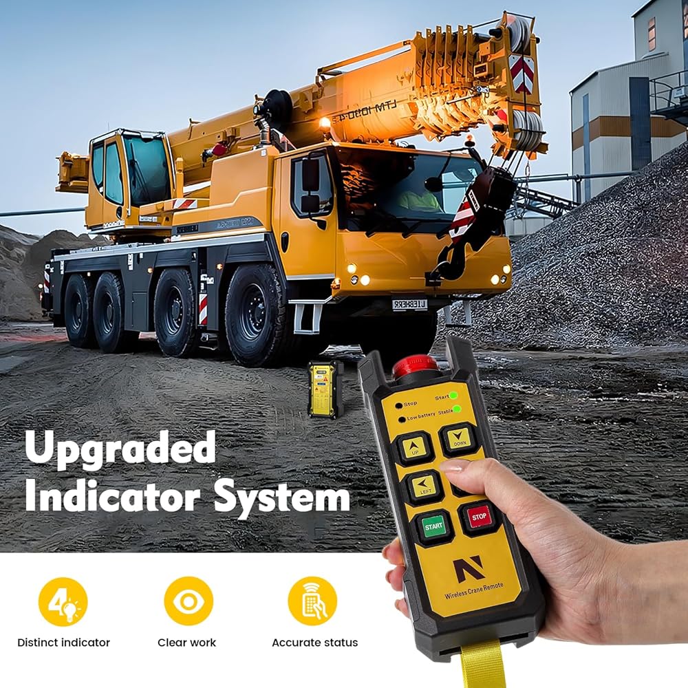[نظام المؤشر المحسن]: يتميز جهاز التحكم عن بعد للرافعة النموذجي الجديد بنظام مؤشر مطور يعزز كفاءة أعمال الرفع الخاصة بك. بفضل تحسين الرؤية والدقة، يمكن للمشغلين مراقبة الحركات والتحكم فيها بسهولة وبدقة أكبر.
