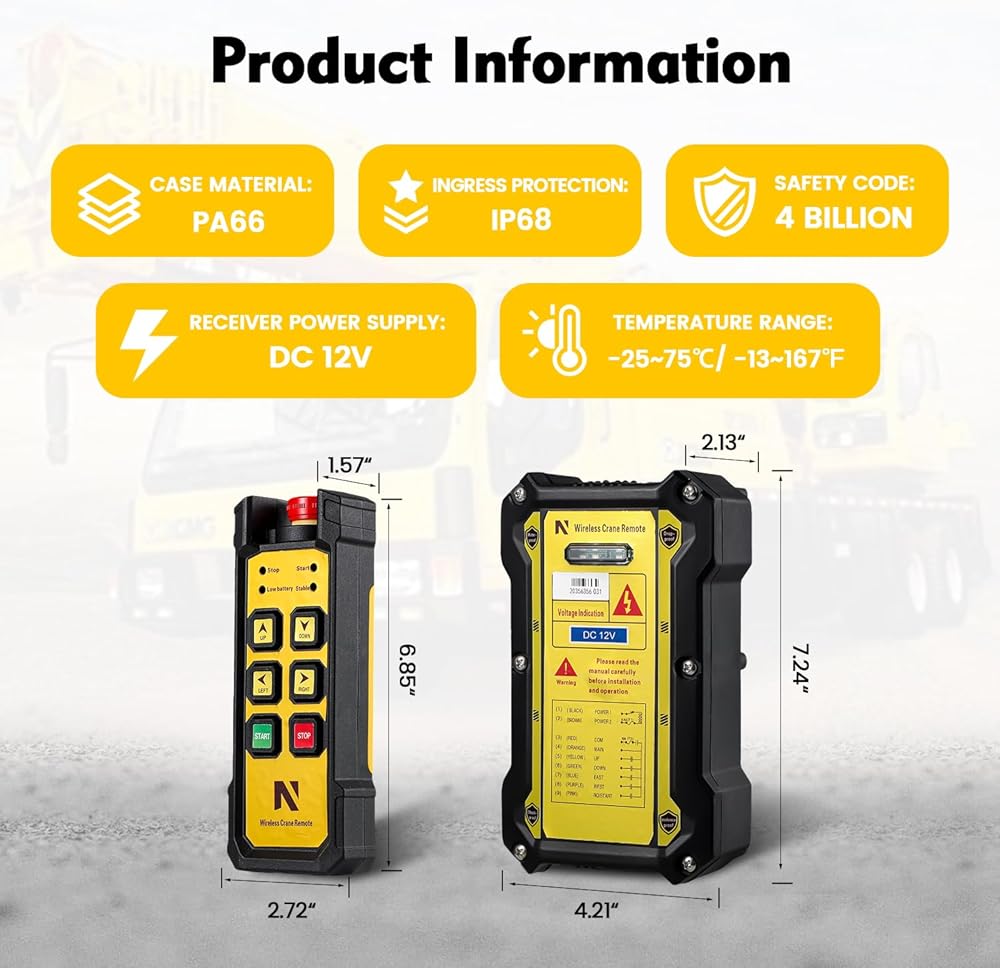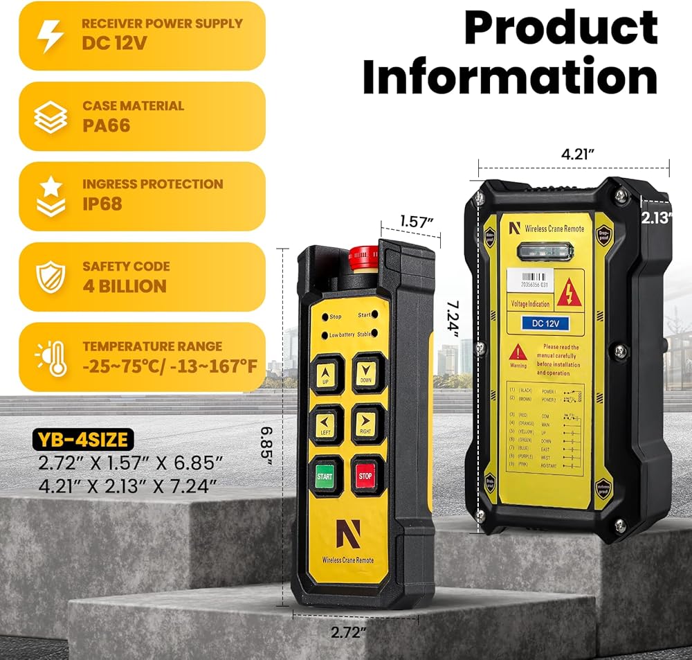 [حماية IP68]: توفر حماية IP68 لجهاز التحكم عن بعد للرافعة حماية أكبر ضد الغبار والأوساخ والماء، حتى في ظروف العمل الصعبة. وتسمح متانتها المحسنة لها بتحمل البيئات القاسية والتعامل القاسي، مما يقلل من خطر التلف أو الفشل.
