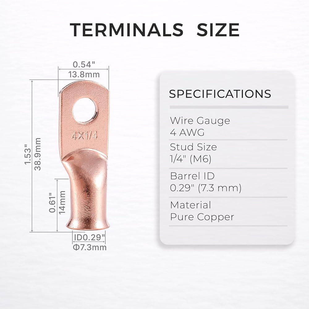Item Name: Copper Wire Lugs(Stud size: 1/4 inch.Used for 4 AWG Cable.)