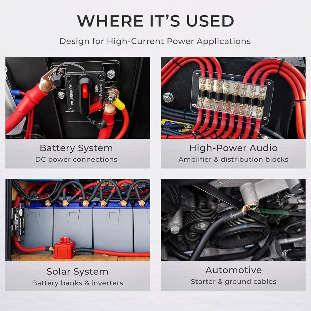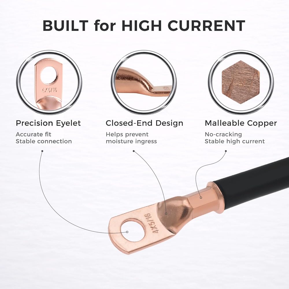 〖High Quality〗All the bare copper battery cable ends are made of 100% annealed electrolytic grade copper, providing a high degree of conductivity for maximum current flow.