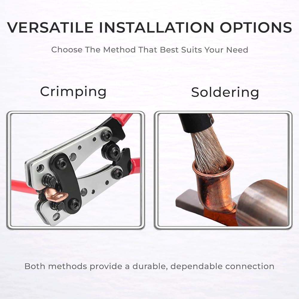 〖Select and Service〗The copper lugs can be crimped or soldered. Please check the product specifications to ensure fit your requirements and applications. Any problems, please contact us freely, we will back to you ASAP!