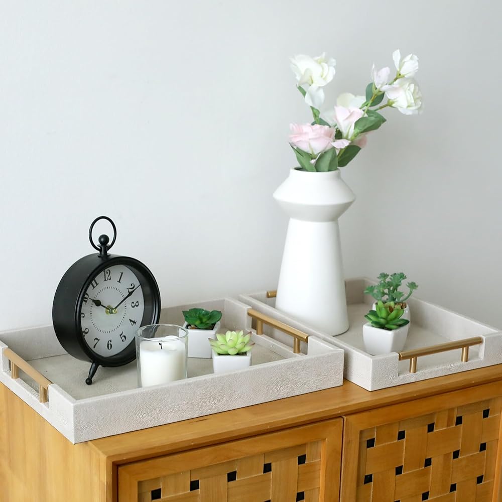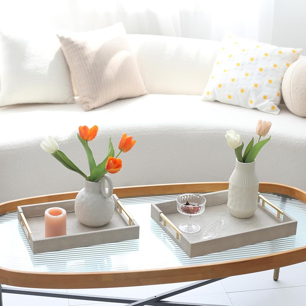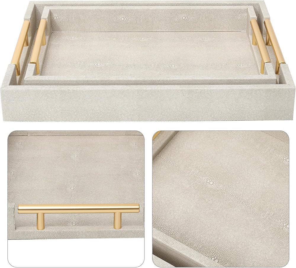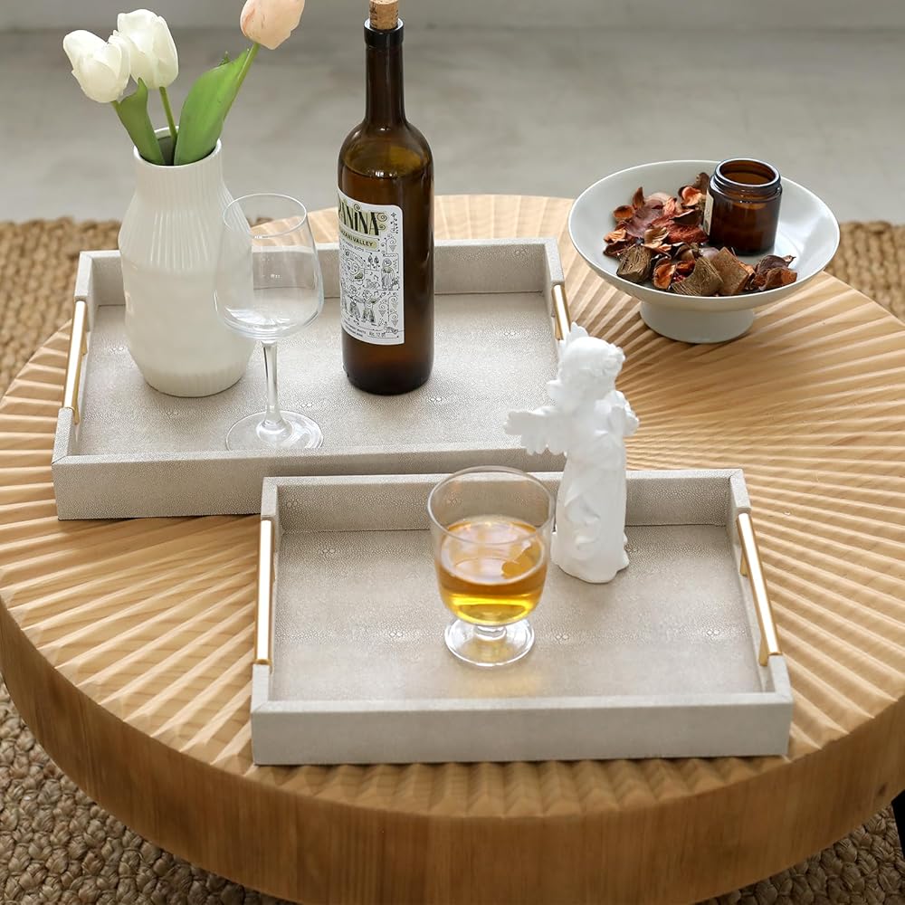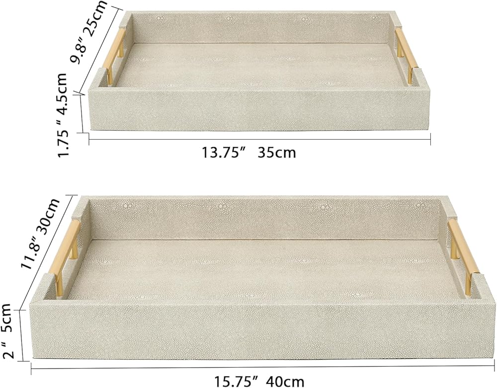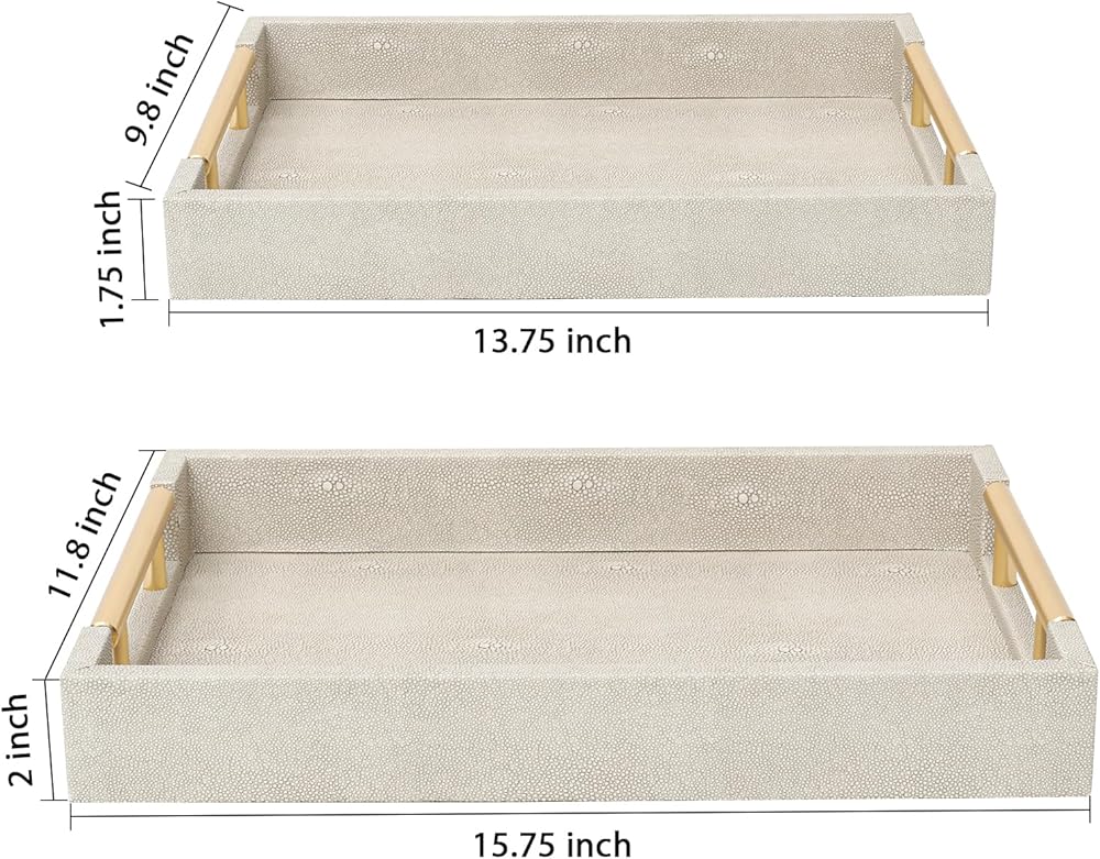[Durable Trays] - Handmade with attention to detail, these trays boast exceptional craftsmanship. The MDF construction ensures durability while the faux shagreen leather covering gives them an elegant appearance. Whether used for decoration or serving purposes, they effortlessly blend functionality with style.