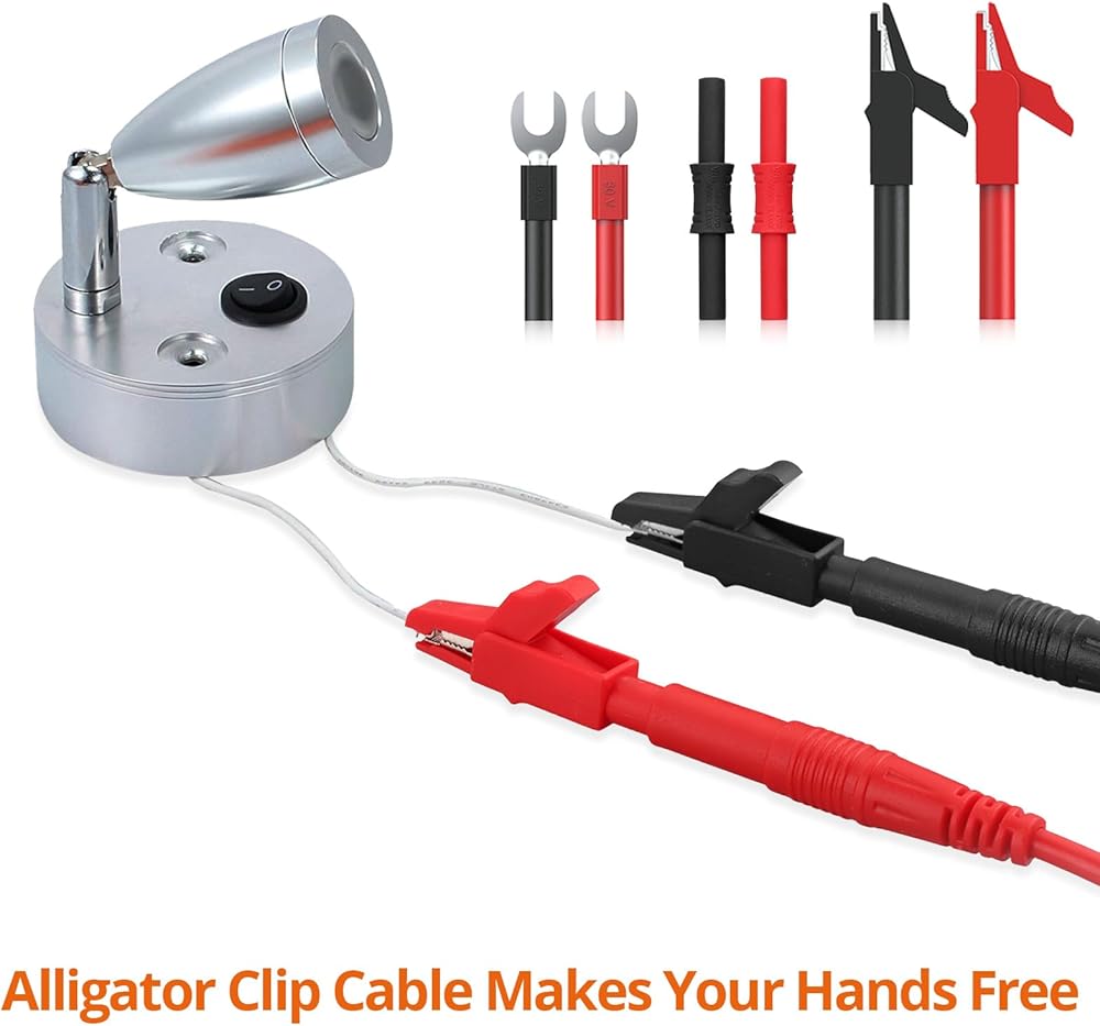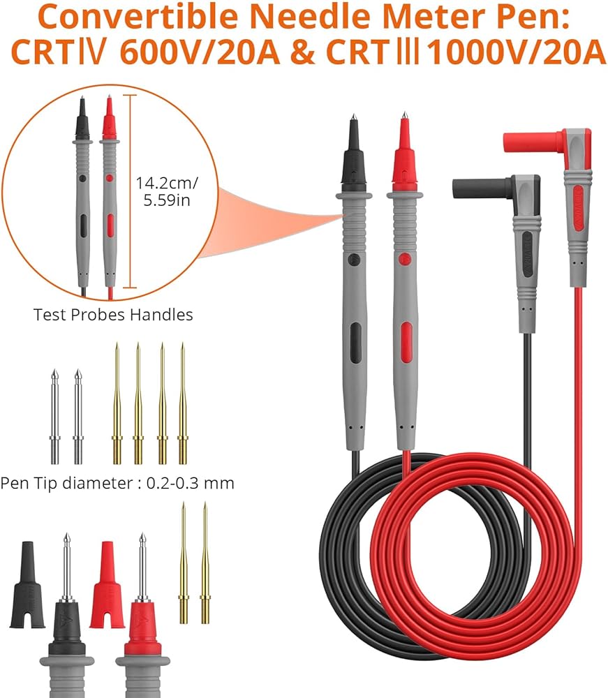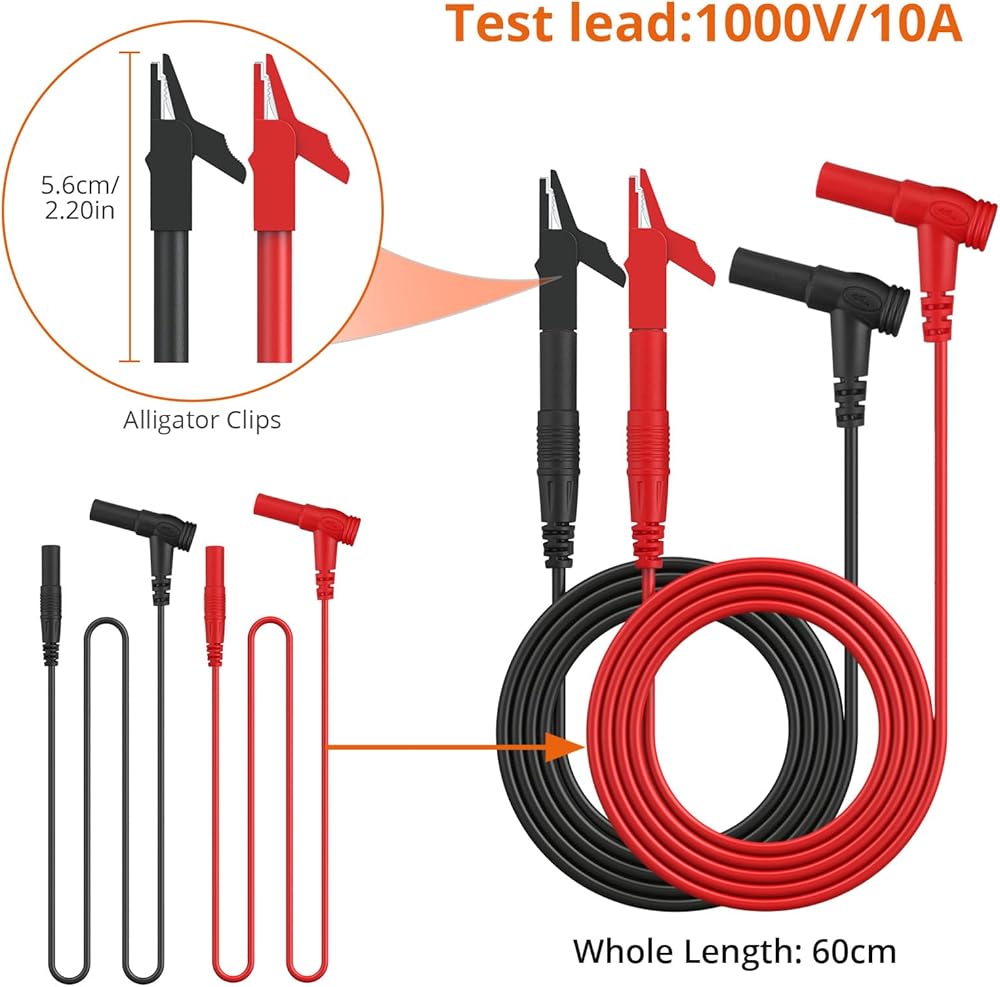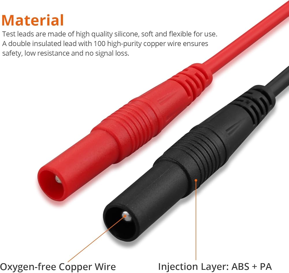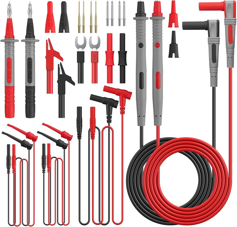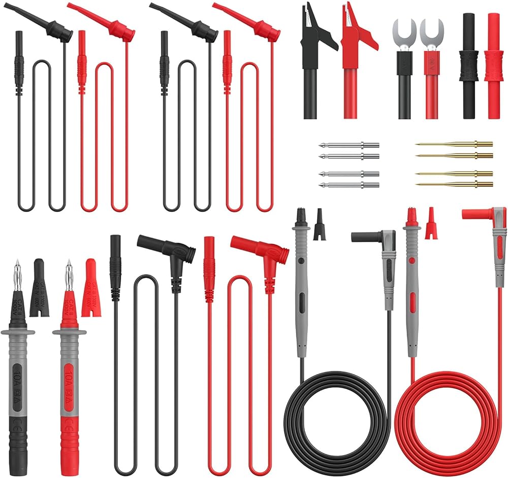 ما تحصل عليه: 2 قلم قياس دبابيس قابلين للتبديل، 2 × 60 سم سلاسل اختبار مستقيمة الانحناء، 4 × 1.0 مم، 4 × 2.0 مم، 2 × أقلام قياس تحويل الفانوس، 2 × 50 سم خطافات اختبار ذكر، 2 × 50 سم اختبار أنثى خطافات، 2 × 6 مم مقابس على شكل حرف U، 2 × محولات، 2 × مشبك تمساح.