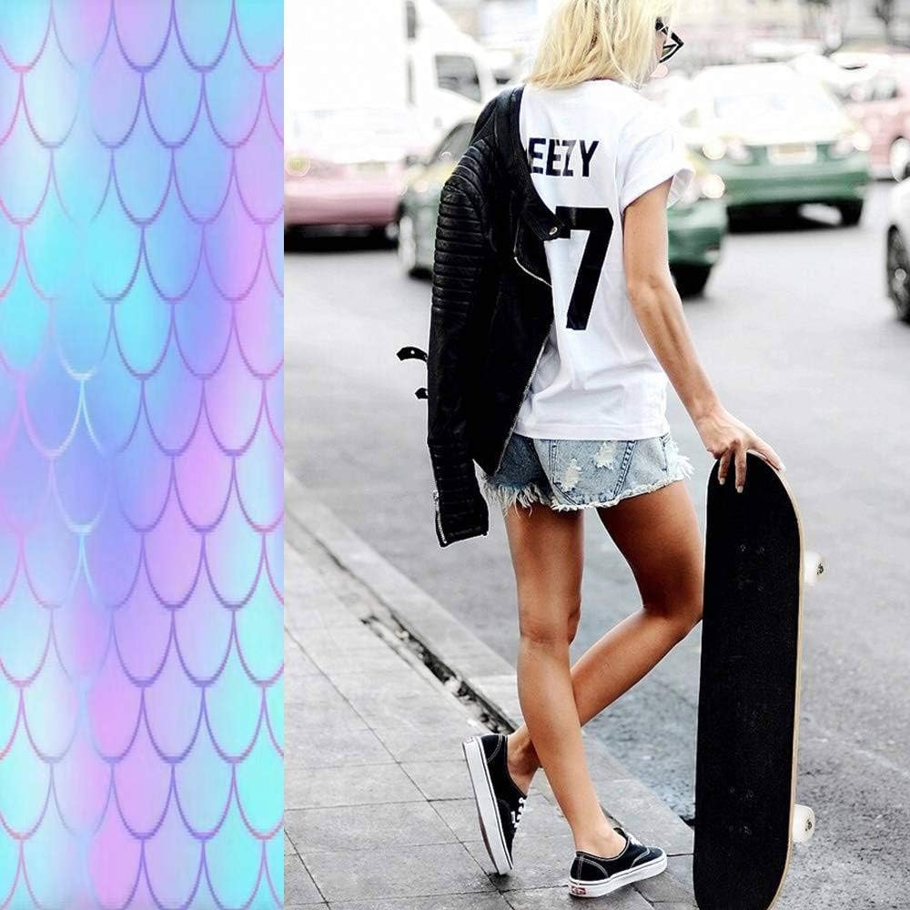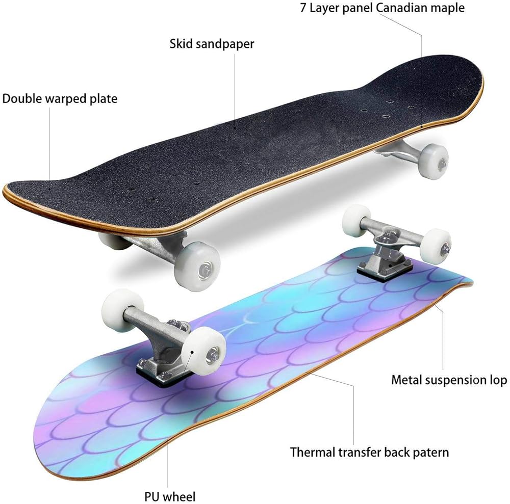 • High Quality: Use thermal transfer which was printed onto the board to let the pattern more vivid. PU wheel with high speed precision bearing. High density sandpaper Non-slip and Waterproof Surface.