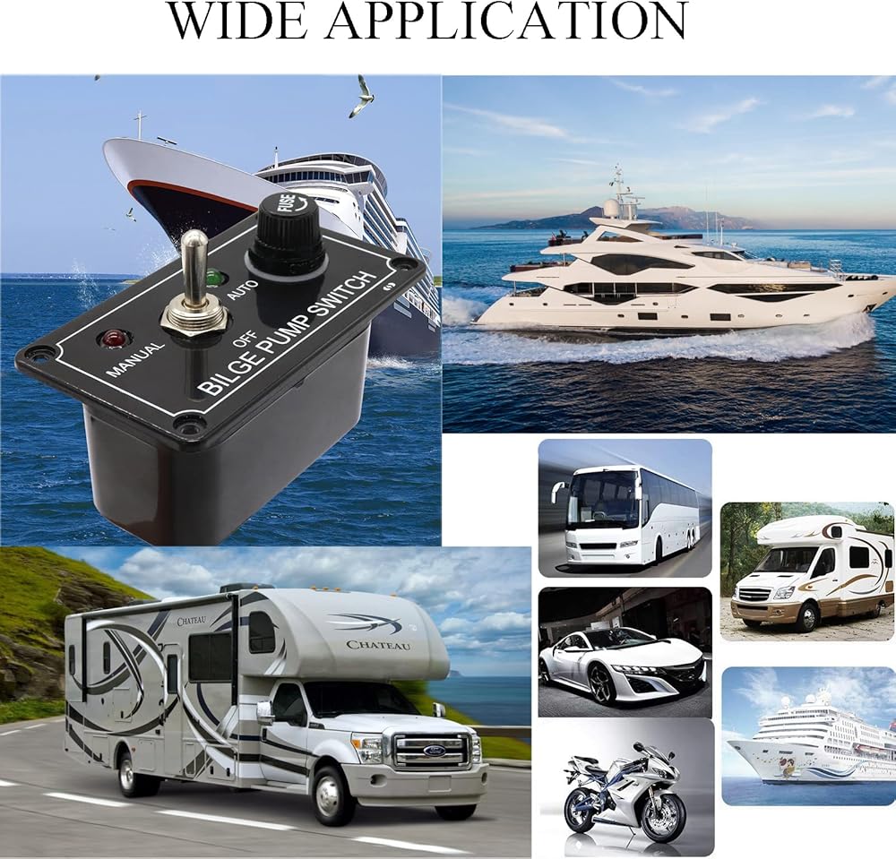 • Wide Application: Suitable for use with automatic bilge systems featuring automatic pumps or external float switches, making it ideal for use on marine boats, yachts, campers, and trucks.