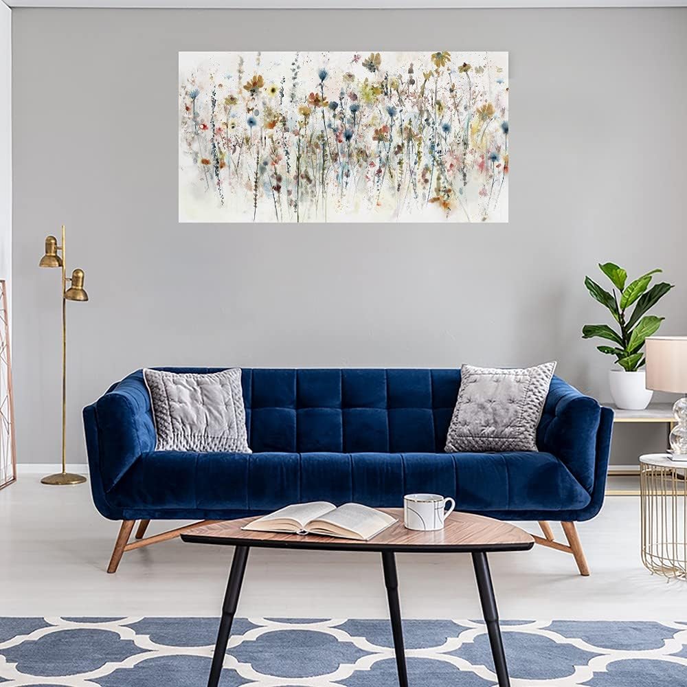 • لوحة فنية جدارية من القماش الزهري - قم بتحويل مساحة المعيشة الخاصة بك مع هذه اللوحة الفنية الجدارية القماشية الكبيرة التي تتميز بأزهار برية بألوان مائية مذهلة، مثالية لإضافة لمسة فنية هادئة إلى أي غرفة