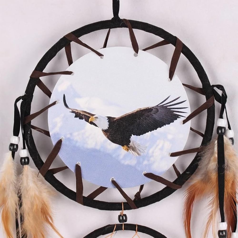 Material: This eagle bear dream catcher wall decor is handcrafted with a sturdy ABS ring, high-definition oil painting, authentic feathers, and glossy ABS beads, it is meticulously handcrafted for exceptional quality.