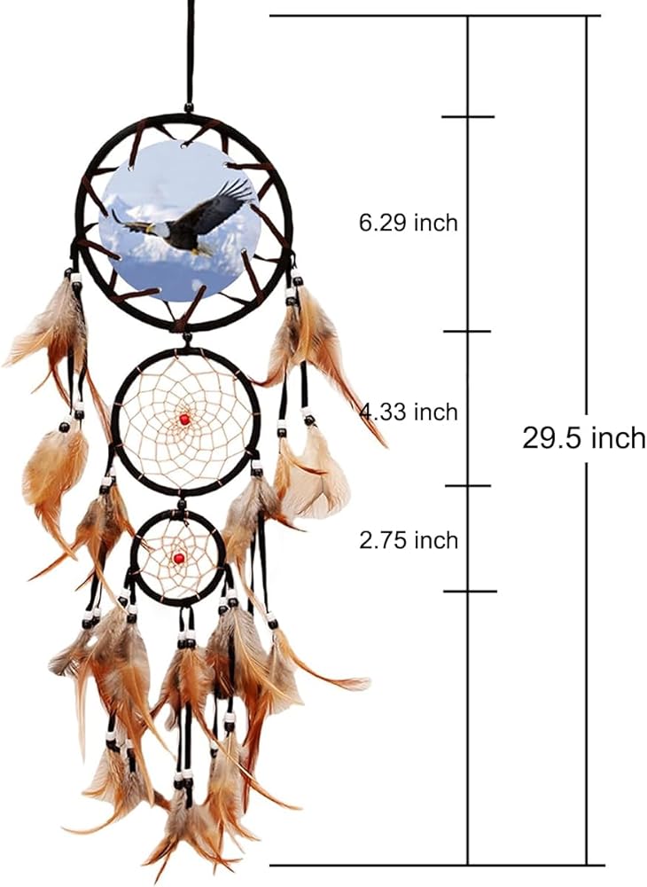 Size: The overall hanging length of these Indian eagle bear dream catcher decorations measures approximately 29.5 inches / 75 cm, and the top circle has a diameter of 6.29 inches / 16 cm.