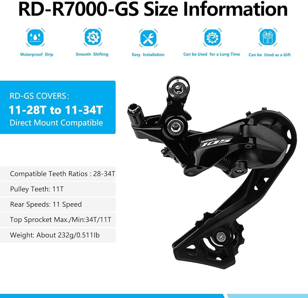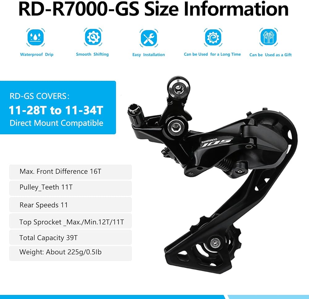 Precision Shifts: The Rd-R7000 11 Speed rear derailleur, compatible with 11-speed systems, ensures accurate gear changes for a seamless ride